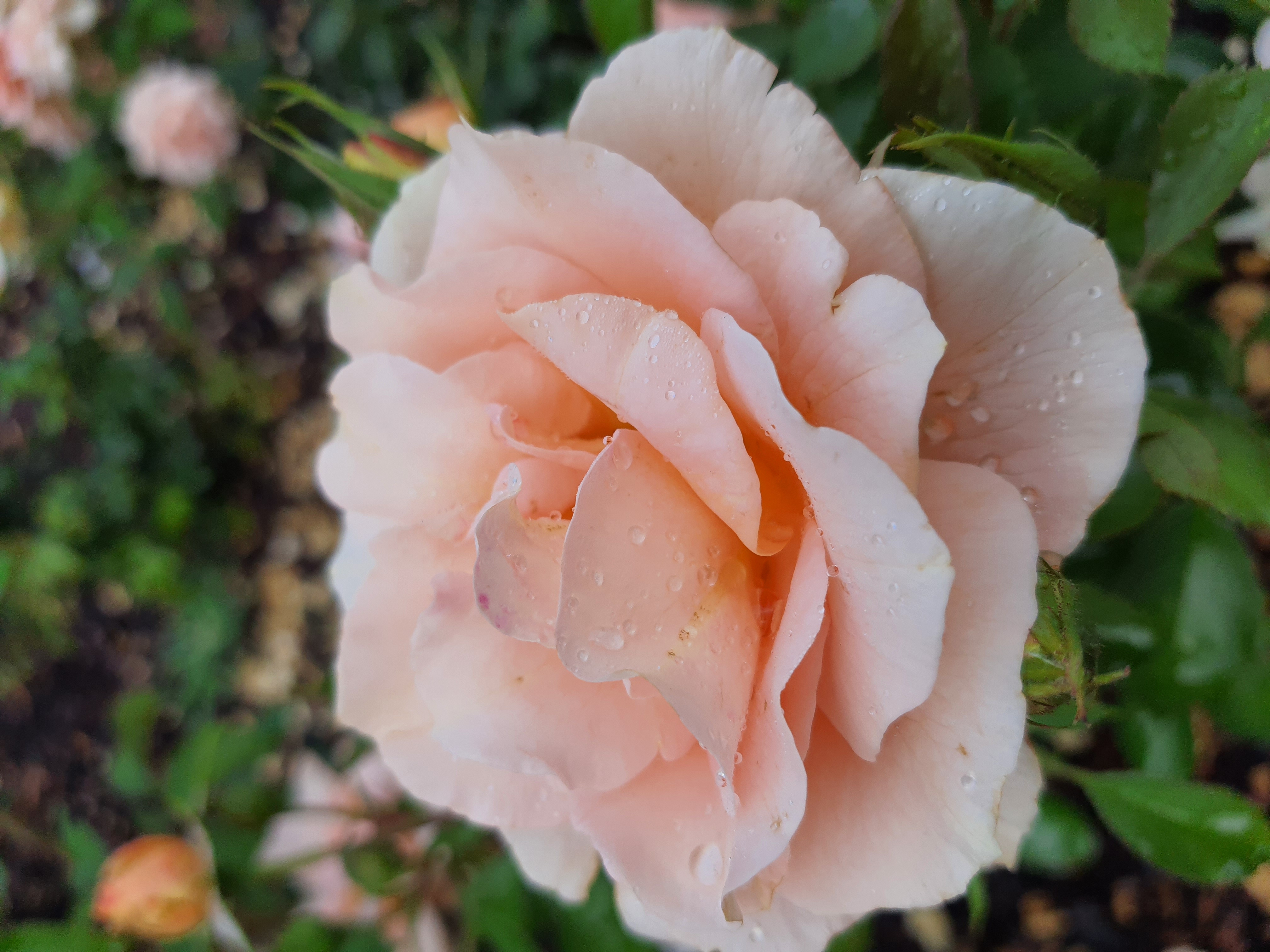 Als Hochstammrose. Sehr gesund und extrem reich reichblütig (auch der 2. Flor). Blütengröße 8-10cm, hitzefest. Regenfestigkeit mittelmäßig. Blütenfarbe verblaßt zwar ein wenig, ist aber in jedem Stadium bezaubernd.