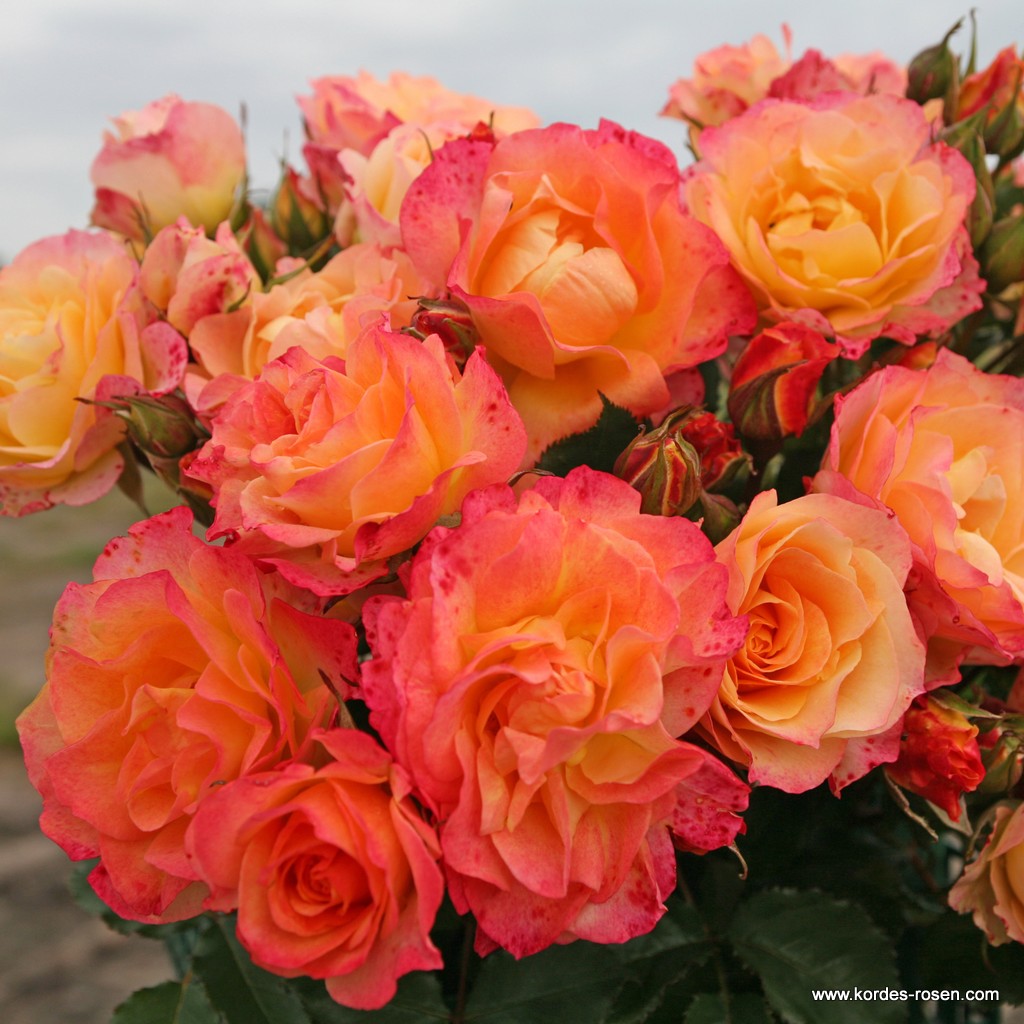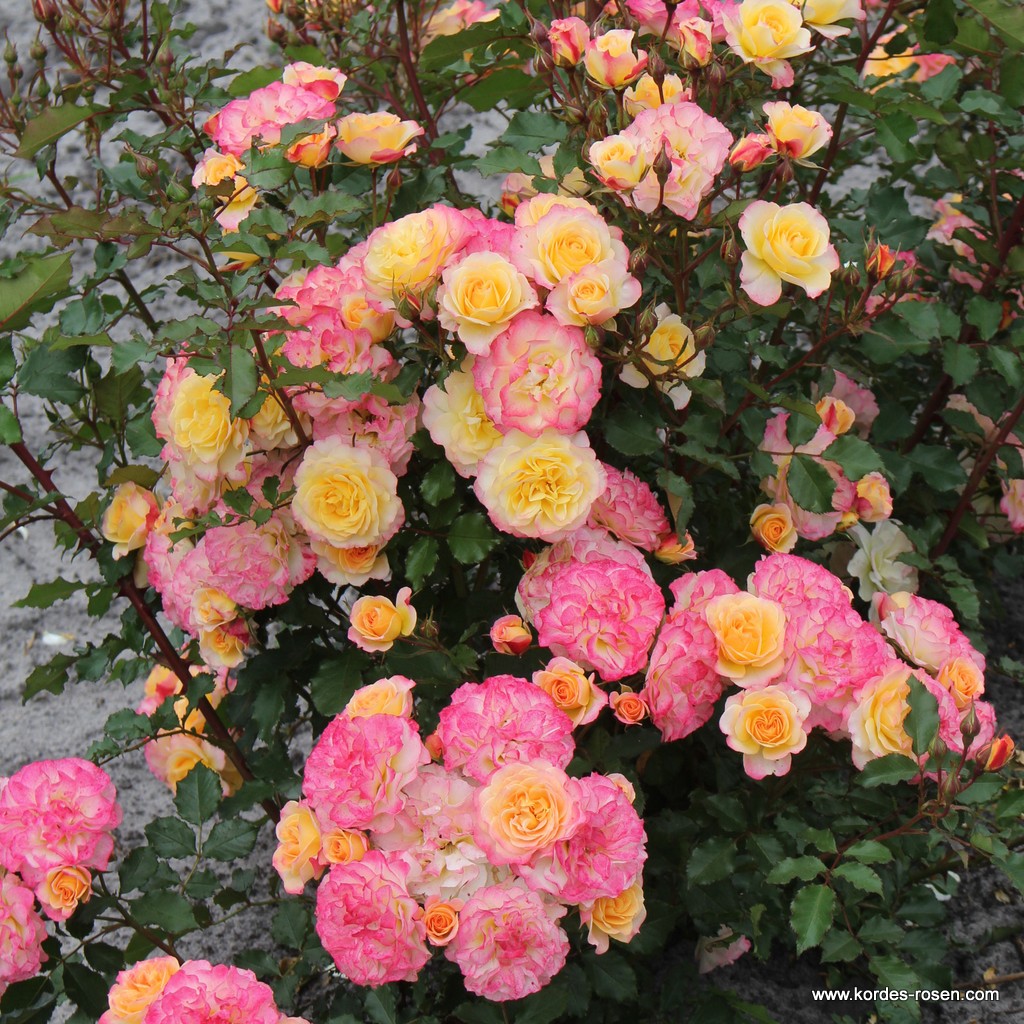 Die Strauchrose Landlust® vereint große Gesundheit mit dem interessanten Farbspiel zahlreicher Blüten, die in großen Dolden auftreten.