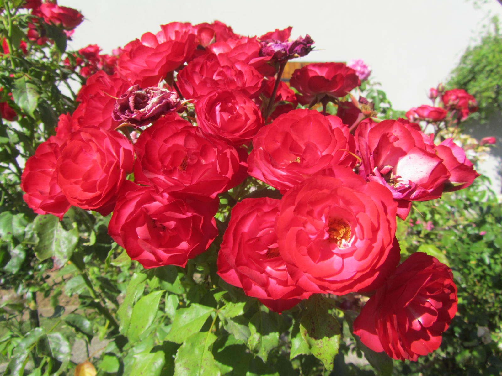 Als wurzelnackte Rose haben wir sie gepflanzt und ein absolutes Blühwunder ist aus ihr geworden. Von Ende Mai bis in den Winter blüht sie unermüdlich bei uns. Im Frühjahr schneiden wir sie weit zurück, was sie aber nicht davon abhält im Laufe des Jahres wieder eine Höhe von 2 Metern zu erreichen. Von oben bis unten voller Blüten. Eine unglaubliche Pracht. An ihrer Seite steht die Rose Solero, die ebenfalls voller Blüten versucht mitzuhalten, aber diesen Blühtraum nicht erreicht.