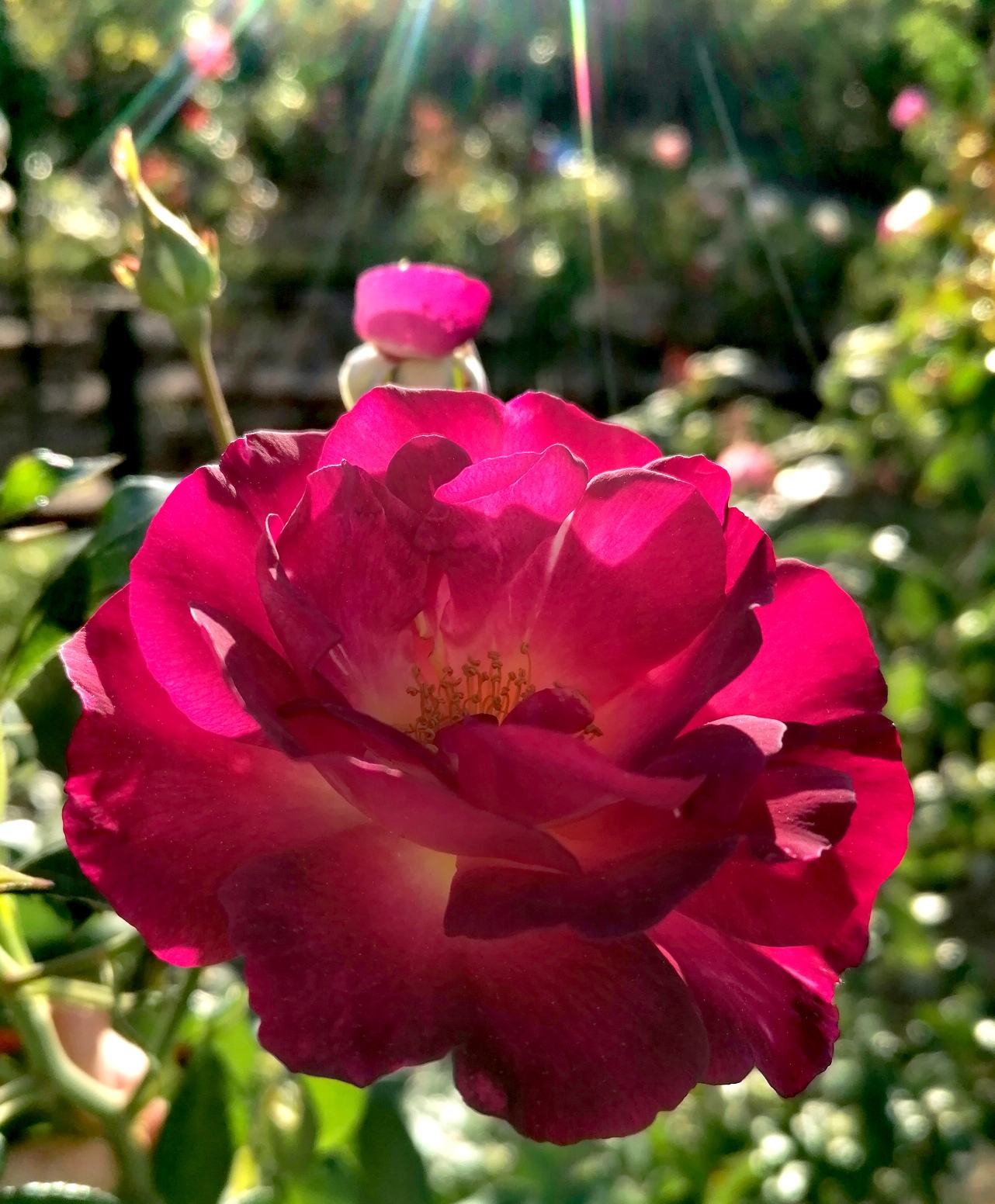 Ich habe sie scheinbar an eine Stelle gesetzt, die sie sehr mag. Sie präsentiert sich majestätisch im Beet mit einer unerwarteten Höhe von etwa 2 Metern und schaut nach wenigen Jahren nunmehr gelassen auf die "Wege der Sinne" neben ihr herab :-). Eine wunderbare Rose - mit einer verzaubernden Farbgebung...