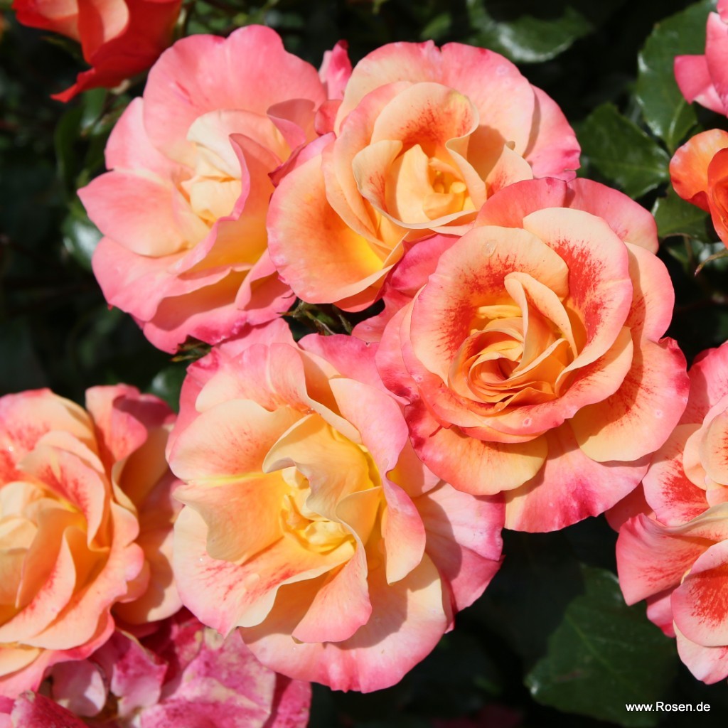 Beetrose mit Farbübergängen wie von einem Airbrush-Künstler. Airbrush® hat eine besonders auffällige Zeichnung der Blüten, ist sehr gesund mit reichen Blüten und kompaktem Wuchs.