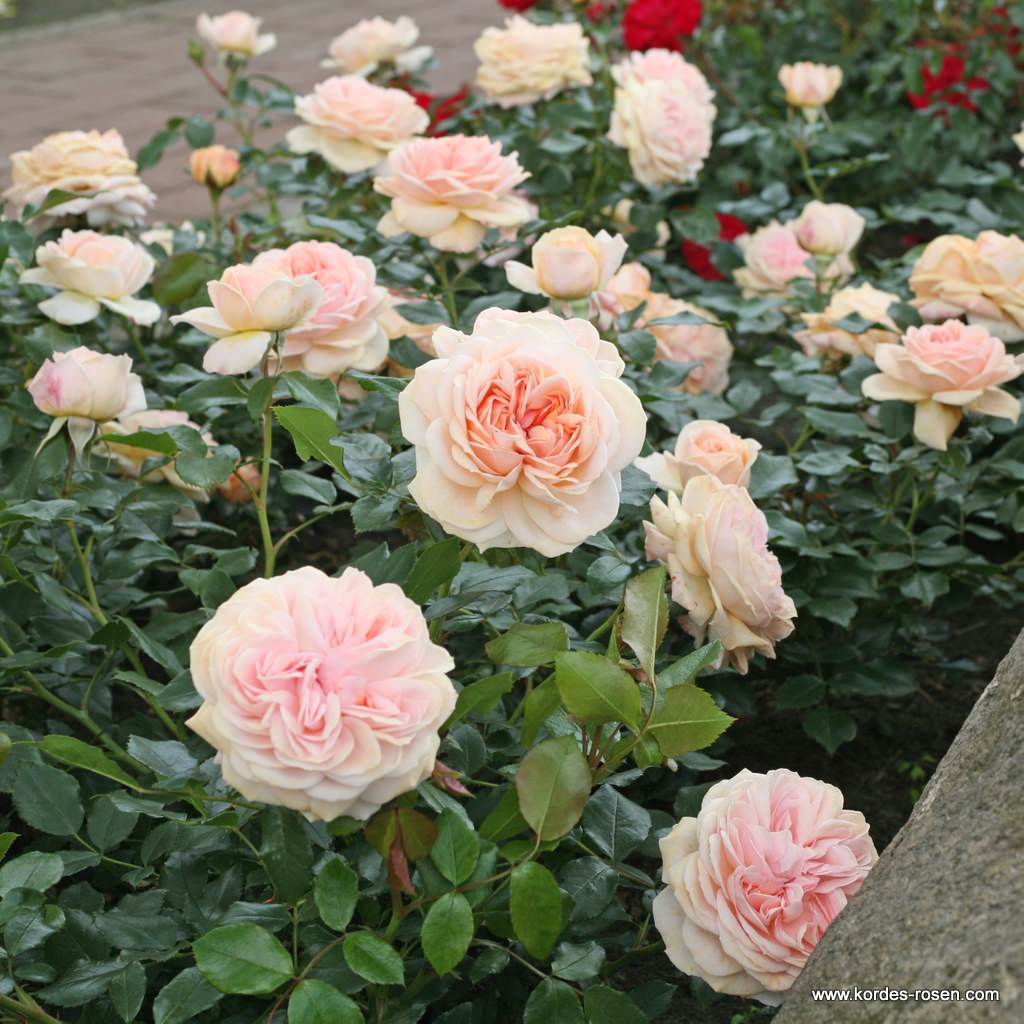 Eine wunderschöne, gesunde und kompaktwachsende Rose mit schönem Blattgrün. Blüht sehr ausdauernd und bereichert den Garten bis weit in den Herbst mit wunderbarer Romantik. Die Farbe variert stark von rosa bis lachs je nach Temperatur und Wetter.