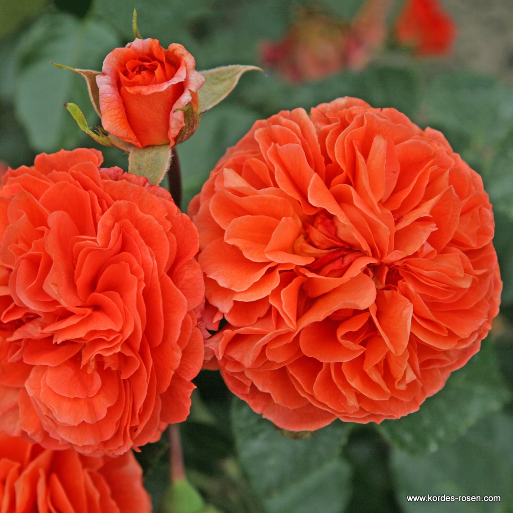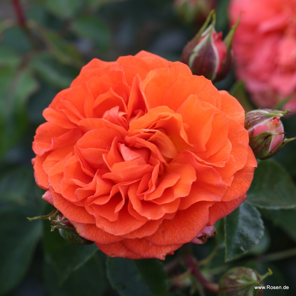 Buschig wachsende Beetrose mit wetterfesten, farbintensiven, nostalgisch geformten Blüten. Orangerie® überzeugt mit hervorragender Blattgesundheit.