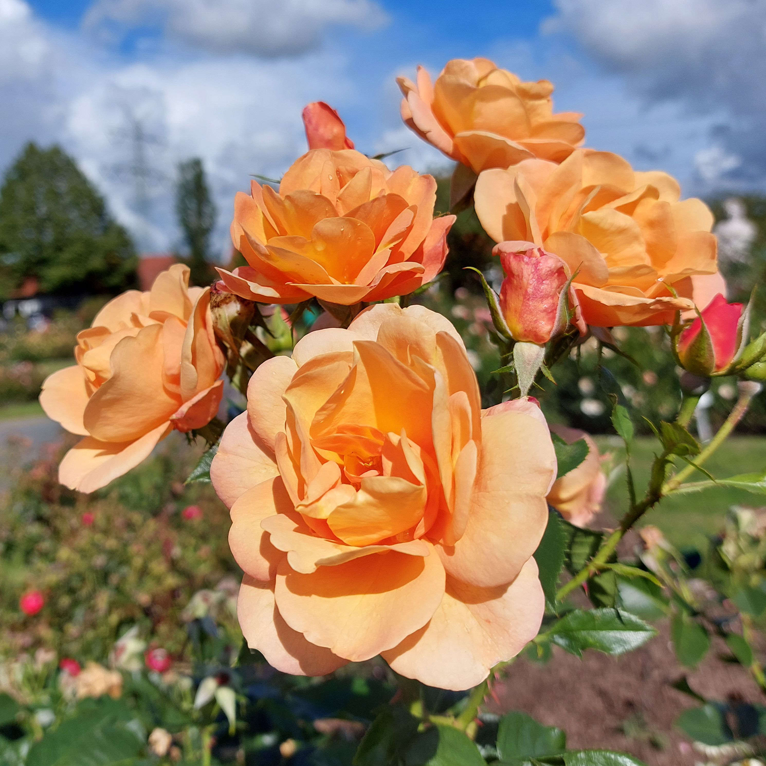 Ich bekam diese Rose wurzelnackt im April und habe sie in einem großen Kübel auf der Südterrasse stehen. Jetzt ist sie bereits 1,15m hoch und schön buschig gewachsen. Sie blüht gerade das zweite Mal sehr sehr üppig. Die Blüten sind im aufblühen aprikotorange, wechseln dann in ein warmes honiggelb und verblassen am Ende zu einem cremeton. An einem Stiel sitzen hier bis zu 10! Blüten. Ein bisschen Regen überstehen sie genauso gut wie 34 grad Mittagshitze. Das Laub ist mittelgrün und bis jetzt extrem gesund. Während viele andere Rosen in meinem Garten bereits Sternrußtau oder Mehltau haben ist diese hier bis zur Erde dicht belaubt und gesund. Dazu kommt ein leichter sehr angenehmer Duft. Sie ist mit sehr vielen bösen Dornen besetzt, was ich aber nicht schlimm finde. Ich würde diese Rose jederzeit wieder kaufen und kann sie uneingeschränkt empfehlen.