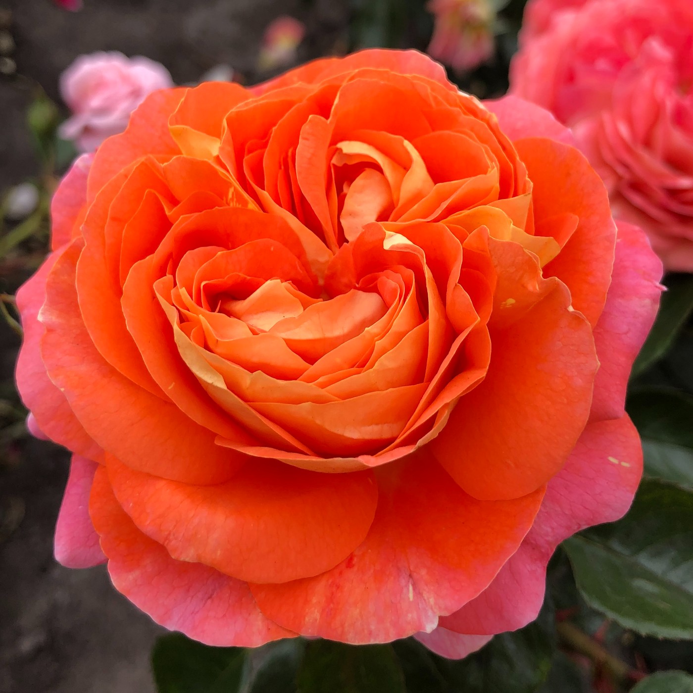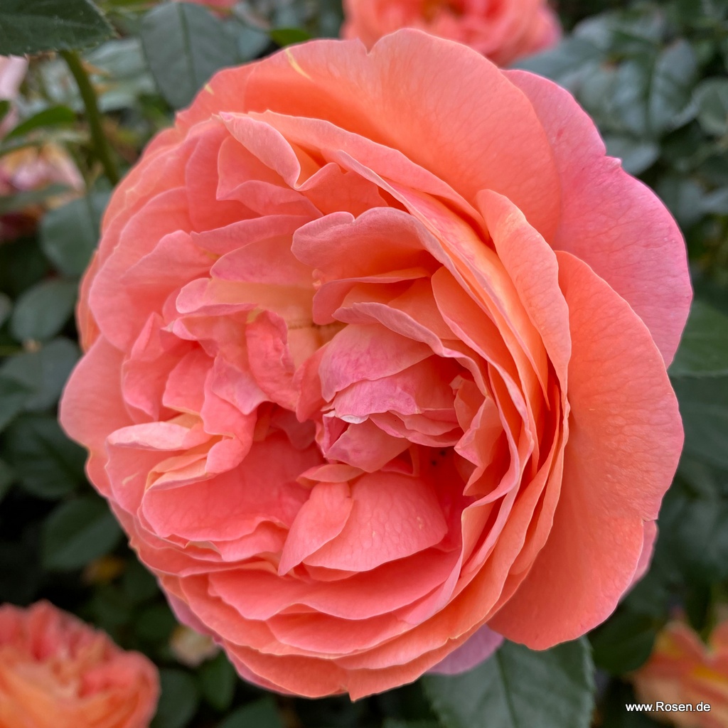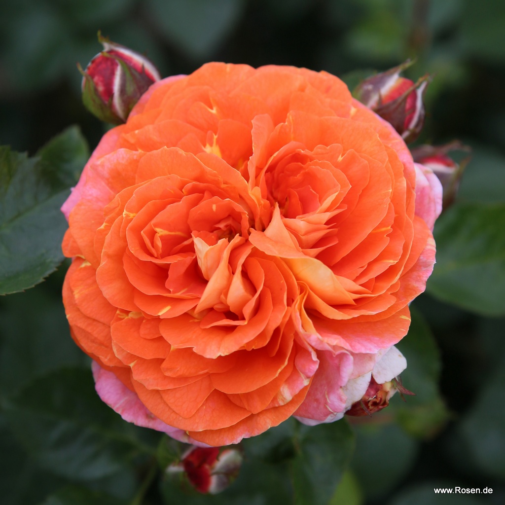Buschig-kompakt wachsende Beetrose mit nostalgisch geformten Blüten in kleinen Dolden und gesunder Belaubung. Die mittelgroßen, dicht gefüllten Blüten zeigen ein frisch-fruchtiges Farbspiel aus kräftigem Orange mit gelber Unterseite.
