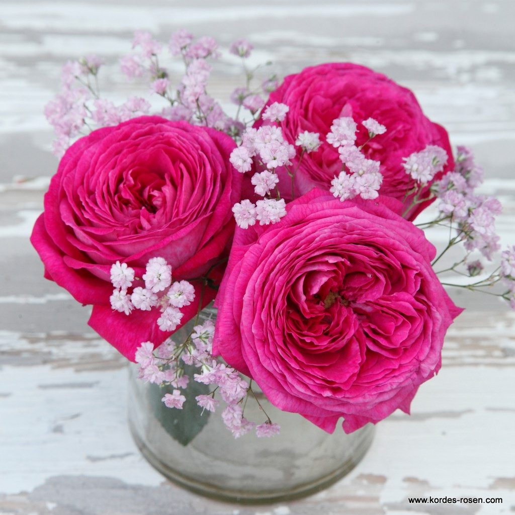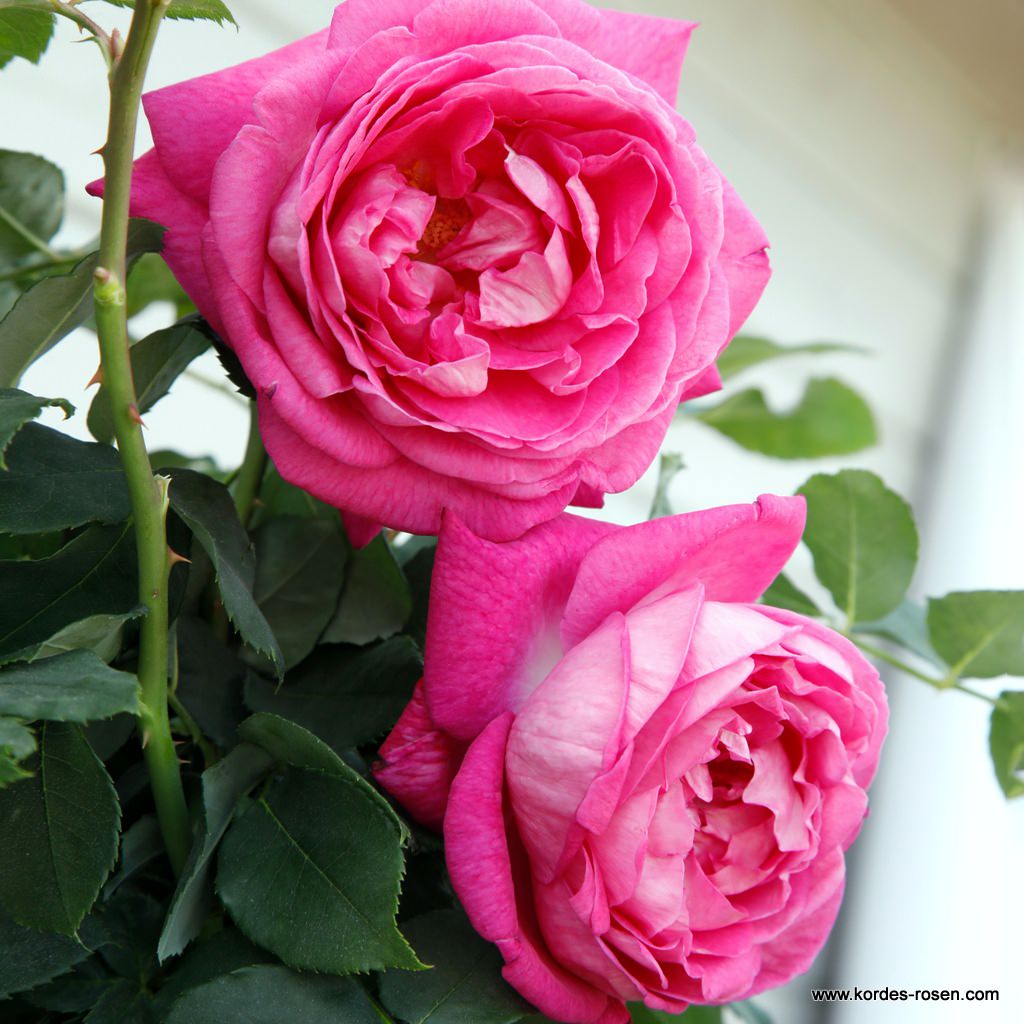 Ich habe die Rose im Herbst als 2 l Topf mit vieln Blättern geliefert bekommen.Bis Mai war ich begeistert von der Freifrau.Trotz sehr kalten Winter( natürlich richtig eingepackt ,da sie im Topf steht)kein Blatt verloren und bekam auch richtig viel Knospen.Die Punktabzüge bekommt die Rose weil,wenn die große ,volle Blüte 1 Tag aufgeblüt ist hängt die Blüte nach unten.Anscheinend ist der Stiel zu schwach oder sie muß noch älter werden und kräfitger.So etwas kenne ich nicht von meinen anderen Kordes Rosen .