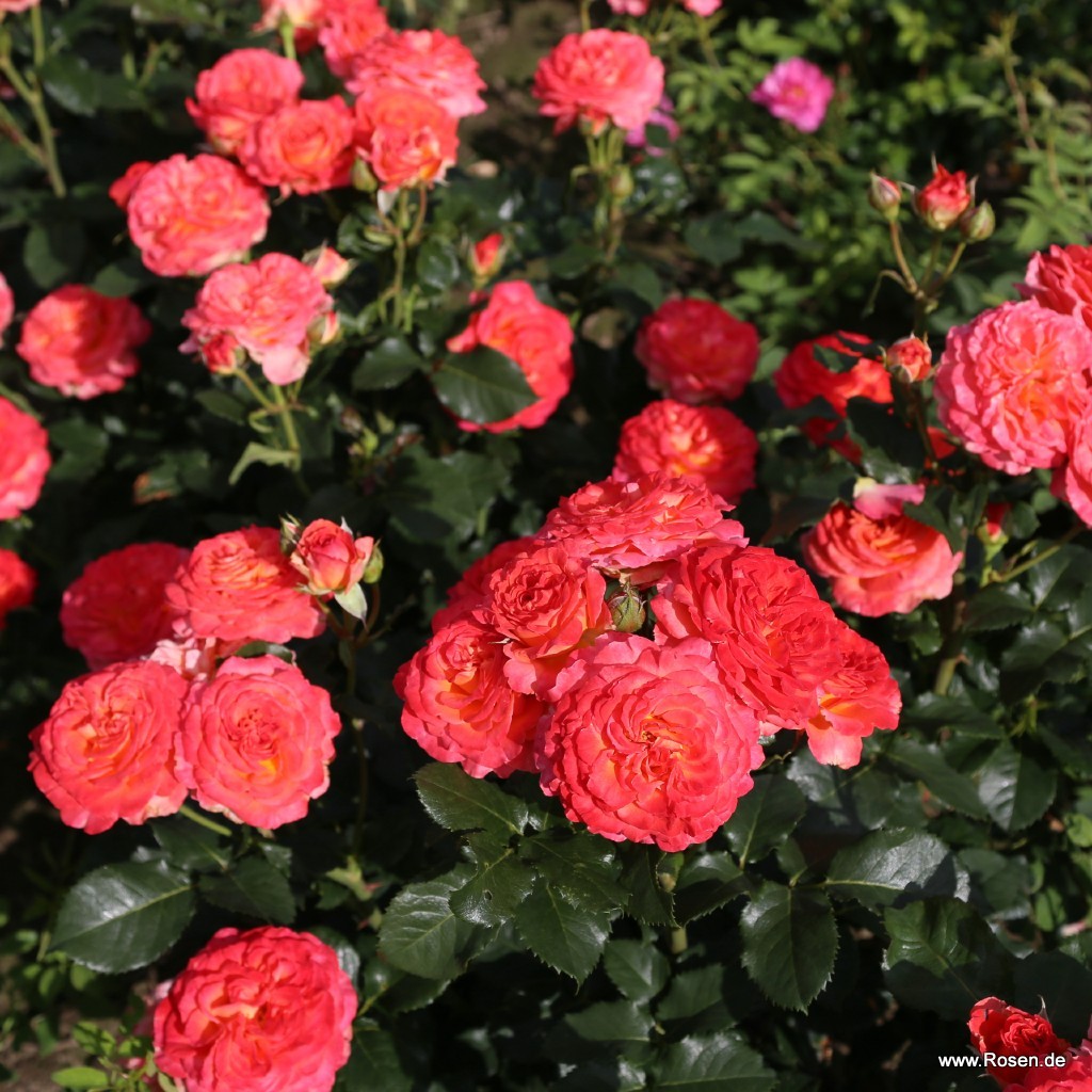 Vulcano® ist eine buschig aufrecht wachsende Edelrose mit Beetrosencharakter. Elegant gefüllte, farbintensive Blüte in kleinen Dolden. Dunkelgrün-glänzende, sehr gesunde Belaubung. ADR 2020