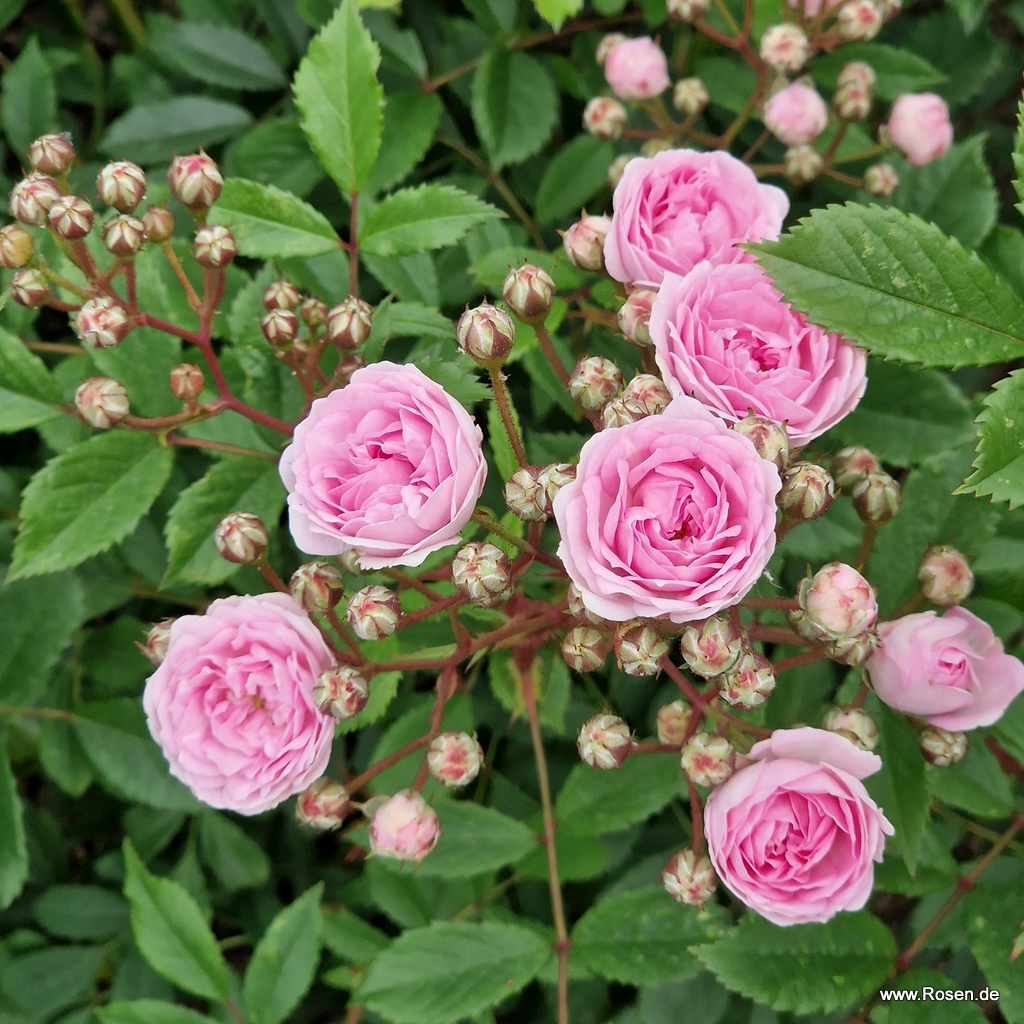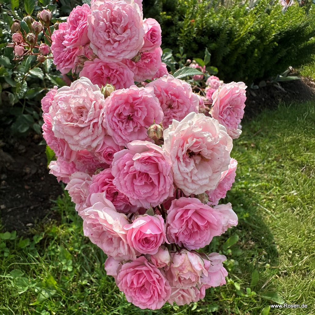 Überaus liebliche und vergleichsweise zierlich wachsende Kleinstrauchrose mit bogig überhängendem Habitus. Bietet sich mit üppigen Dolden kleiner, zartrosa Blüten für flächige Pflanzungen ebenso an, wie in Kombination mit Stauden. Pashmina® ist eine Rose zum Verlieben!