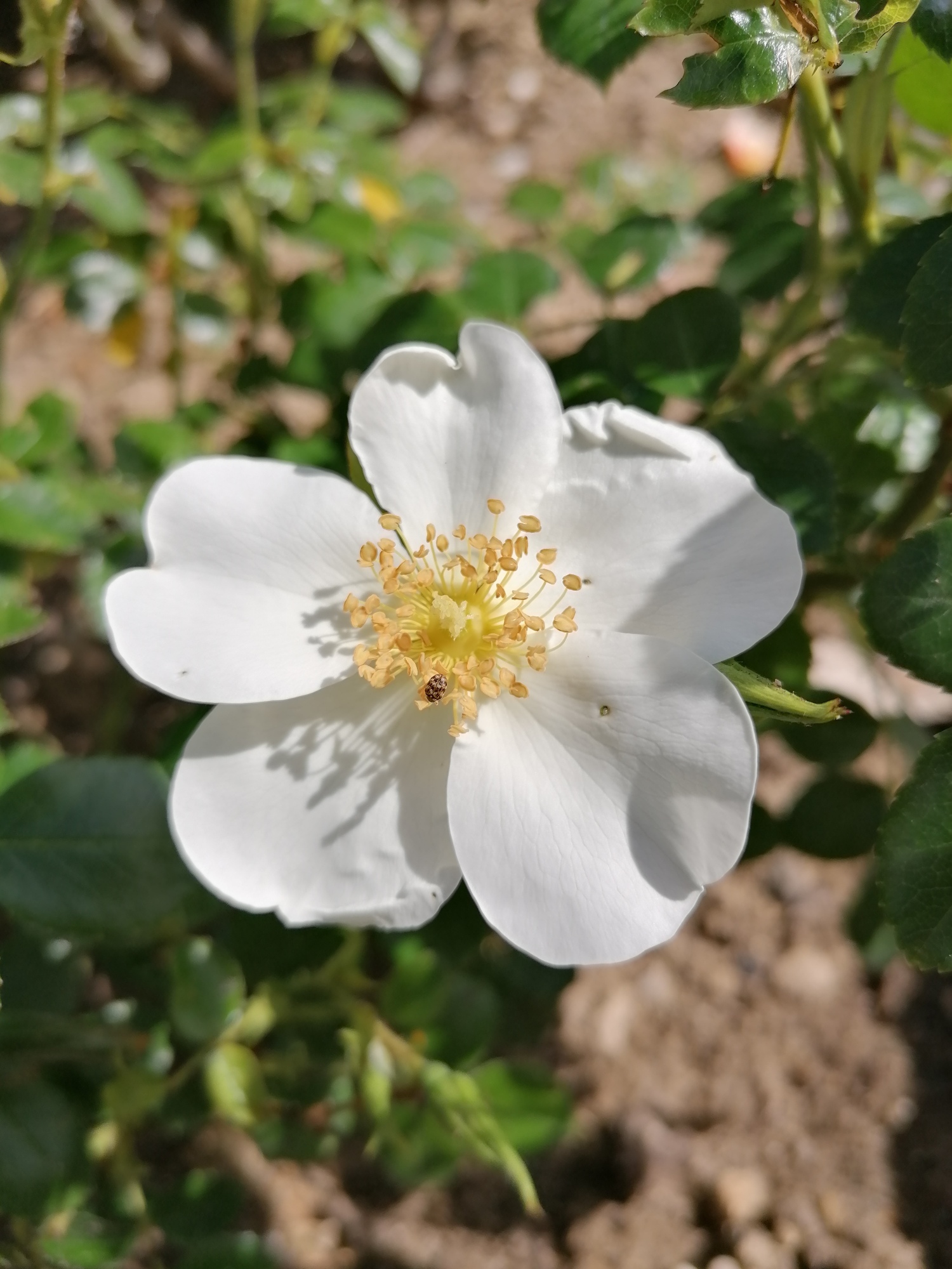 Eine unglaubliche Rose, die ich im Herbst 2018 als Hecke zwischen zwei Gartenbereichen gepflanzt habe. Sie blüht überreichlich bis zum Frost.. Sowohl die Bruthitze 2019 wie auch die Regenperioden 2020 steckte sie locker weg. Besonders charmant finde ich die gelben Staubblätter in den grossen ungefüllten Blüten. Das reine Weiss ist unglaublich schön in Kombination mit farbigen Stauden. Und die ganze Pracht und Schönheit für null Aufwand, ausser dem Frühlingsschnitt und etwas düngen nach dem Austrieb mache ich nichts. Die gebe ich nie wieder her!