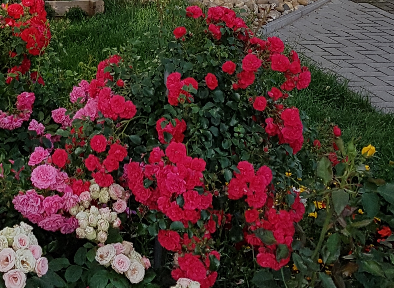 Sie blüht von Juni bis Anfang der Frostperiode, das Laub glänz wunderschön, sie sieht immer frisch aus. Aber das Beste: Eine Wühlmaus hatte alle Wurzeln abgefressen und beim ersten Herbststurm fiel das Stämmchen um. Übrig blieb von meinem geliebten Hochstämmchen nur ein Stecken mit Krone. Aus Anraten von Fa. Kordes habe ich es in einen Eimer mit Wasser gestellt und nach wenigen Tagen wieder eingepflanzt und täglich gegossen. Im kommenden Jahr trieb es später aus als sonst, aber Ende Juli kamen die ersten Blüten und hielten wieder bis zum ersten Frost. Es hat neue Wurzeln und ich werde mich in diesem jahr wieder daran erfeuen können.