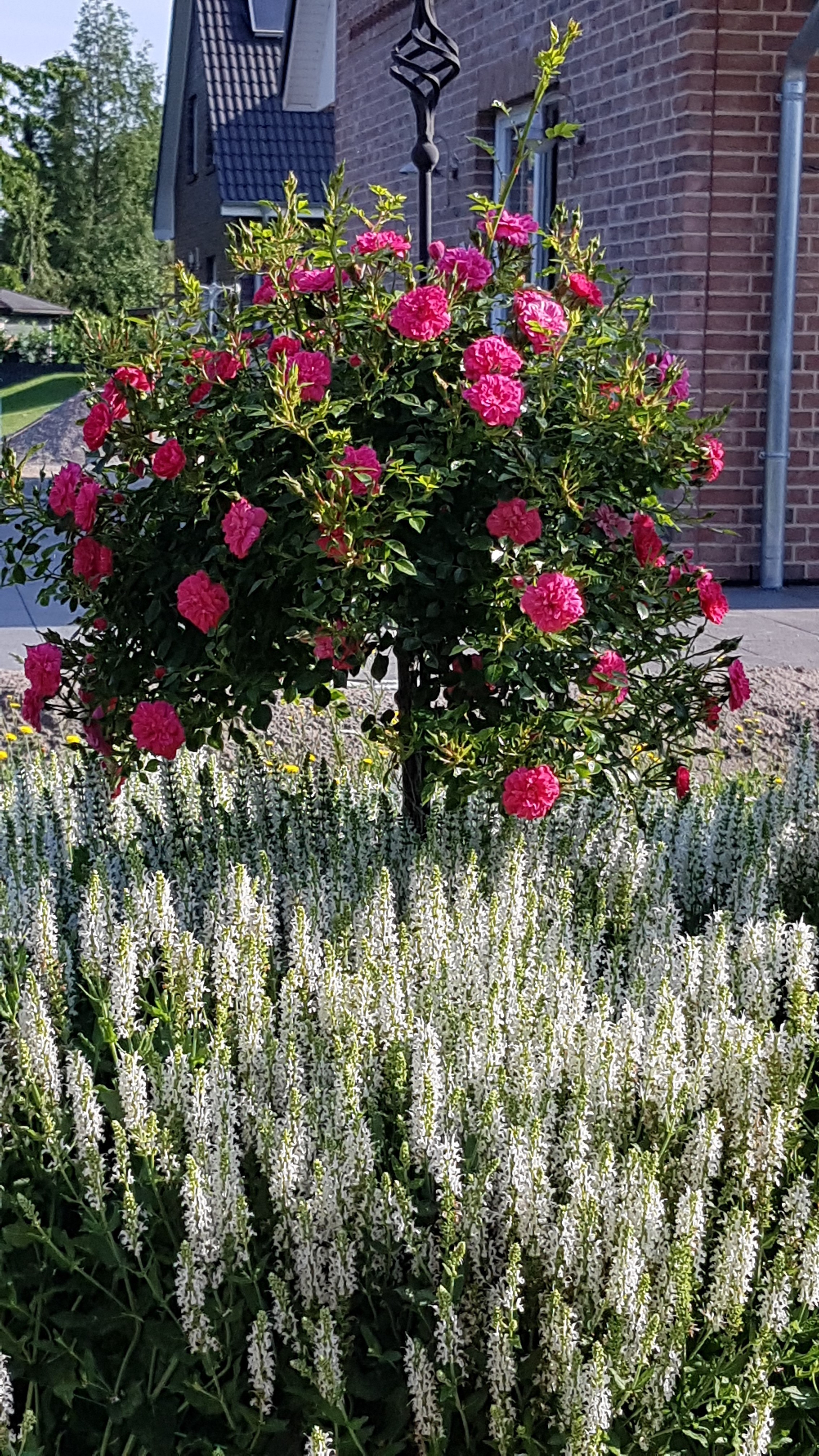 Un autre excellent rosier couvre-sol que j'ai en rosier tige dans ma roseraie écologique. Sa floraison est extraordinaire et impressionnante ! /Another excellent ground cover rose that I have as a standard rose in my ecological rose garden. It blooms extraordinarily well and is impressive!