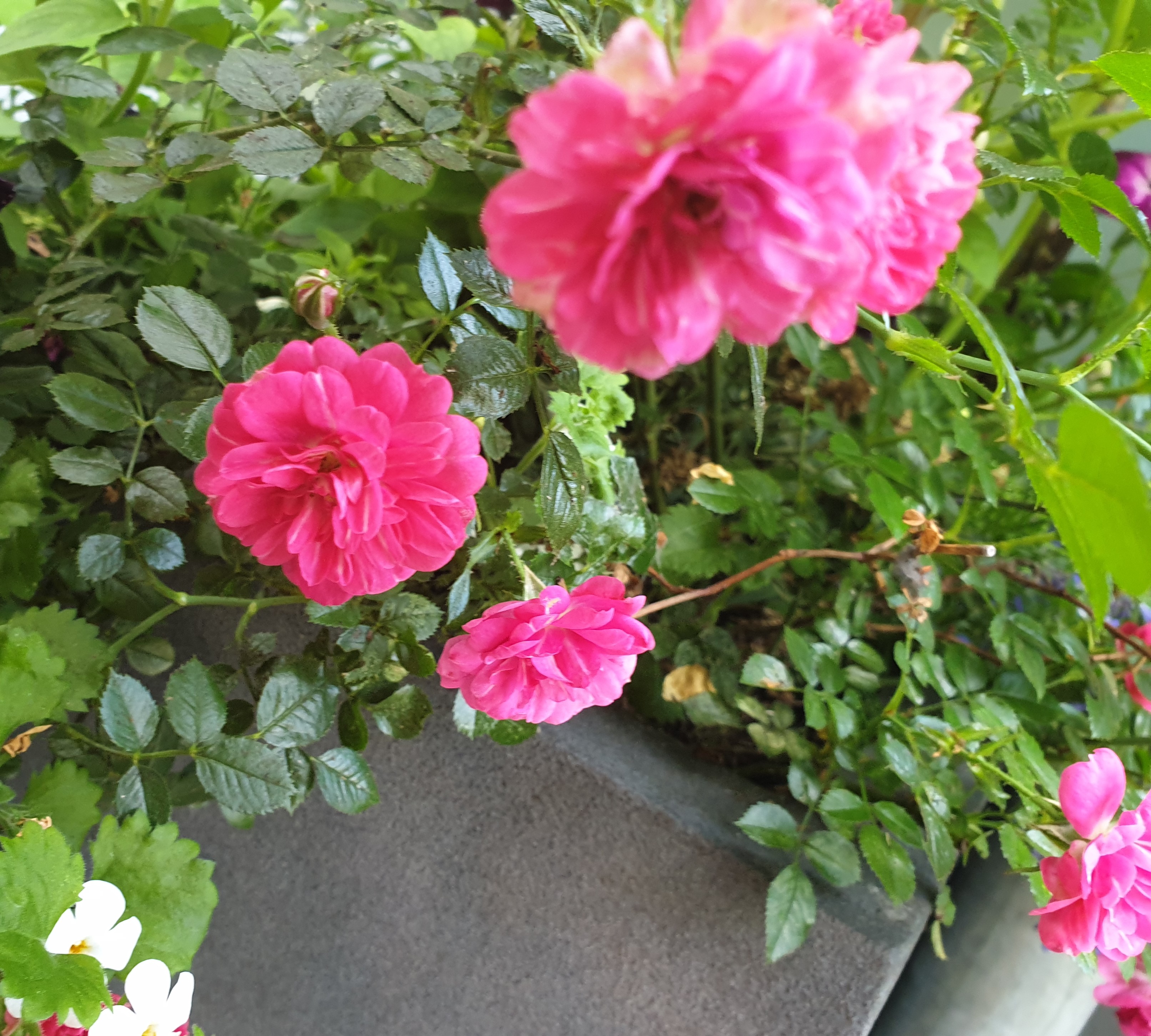 Kann mich den Kommentaren anschließen, super Rose, hübscht alle Beete und Kübel auf. Eine Beobachtung aus diesem Jahr: Nacktschnecken "verputzten" meine feine Hortensie - es blieb nur noch ein Stiel mit einem Blatt. Alles abgefressen. Dann kam Knirps (unbeabsichtigt)und breitete sich unter der Hortensie aus und rankte noch ein wenig nach oben in die kahlen Stiele. Nach einiger Zeit stellte ich fest, dass die Hortensie sich erholt hatte (wieder viele Blätter) und Knirps auch hier eine gut Figur macht. Sie hält auch die riesigen Nacktschnecken von dieser Pflanze fern. Mit der Hortensie wäre es das sonst gewesen.