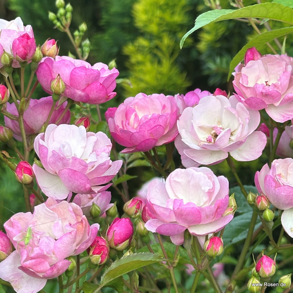 Sehr reich und öfterblühende Ramblerrose, deren zahlreiche kleine Blüten in üppigen Dolden erscheinen und in einem auffälligen Lavendelton leuchten. Mit ihren biegsamen Trieben klettert Lavender Siluetta® an Rankgittern und anderen Kletterhilfen empor und empfiehlt sich mit ihrer moderaten Wuchshöhe von ca. 180 cm auch für kleinere Gärten. Ihre äußerst gute Blattgesundheit wurde 2022 mit dem ADR®-Prädikat bestätigt.