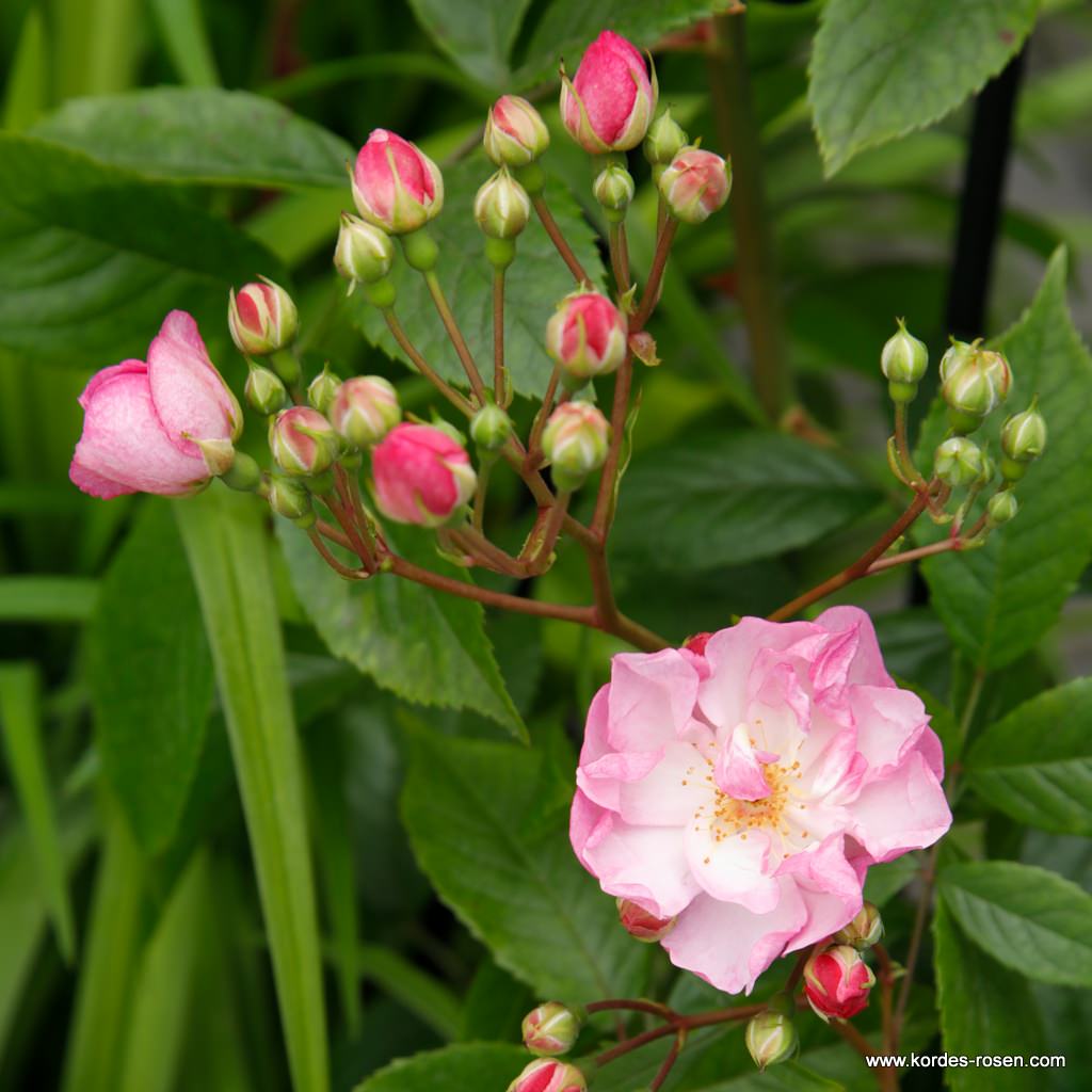 Il a 2 ans, et mesure 1,50 m, et est très florifère. Très joli rosier grimpant qui est une source supplémentaire d'harmonie dans ma roseraie écologique. Je forme de grandes espérances à son endroit ;o) J'achète mes rosiers chez Kordes, parce qu'ils sont greffés sur Canina Inermis - excellent porte-greffe. Une aventure à suivre :o) / She is 2 years old, 1.50 m tall and very floriferous. A very pretty climbing rose which is an additional source of harmony in my ecological rose garden. I buy my roses from Kordes, because they are grafted on Canina Inermis - excellent rootstock. An adventure to follow :o)