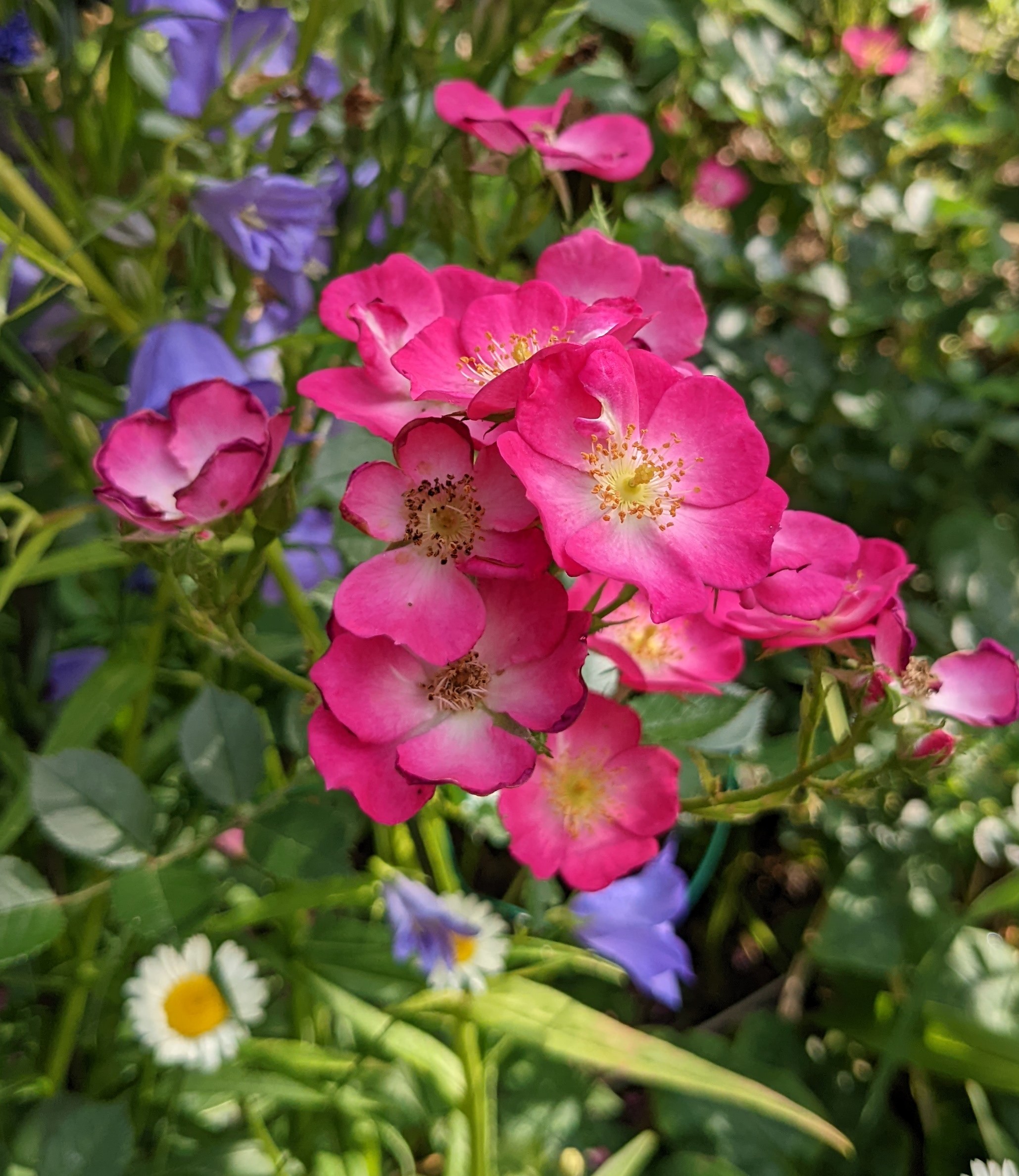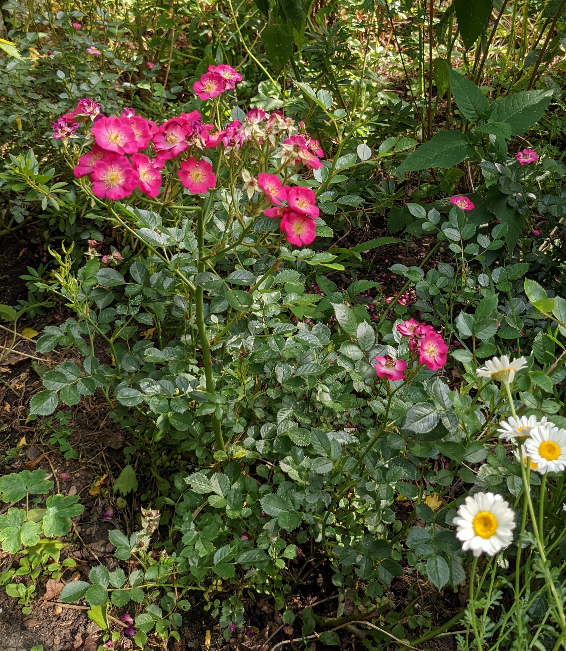 Diese Rose ist ein kleines Wunder. Sie trotzt Hitze und Regen und blüht, blüht, blüht bis in den November. Außerdem strahlen die kleinen Blüten in einem wunderschönen dunklen Pink und werden, wenn man sie nicht abschneidet, im Herbst durch kleine, leuchtend rote Hagebutten ersetzt. Inzwischen haben 7 Lupos einen Platz in meinem Garten gefunden und, je nach Standort, eine Höhe zwischen 30 cm und über 1 m erreicht.