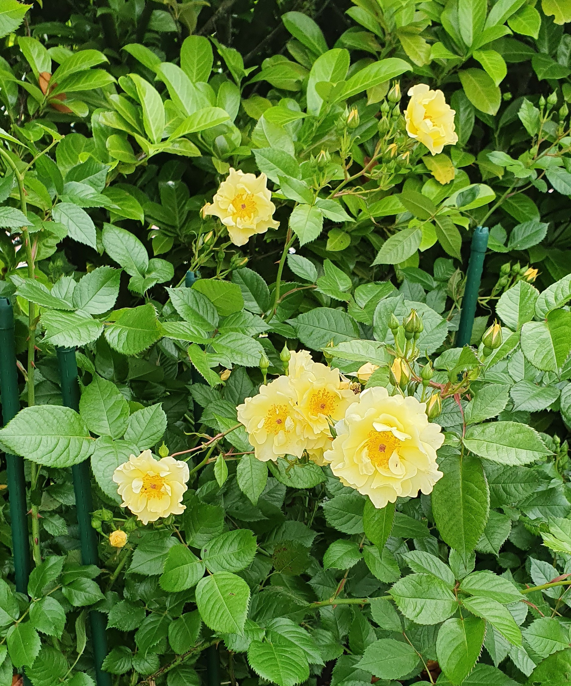 Diese Rose steht bei mir leider weit weg in einer wilden Gartenecke. Ungepflegt, ungespritzt, ungedünkt und macht trotz gärtnerischer Vernachlässigung einen tollen Eindruck, wenn sie sich immer wieder mit Blüten bedeckt. Der fehlende Duft ist da auch kein Minus. Ausserdem ist sie ein Bienenmagnet mit ihren einfachen bis halbgefüllten Blüten. Sie wird bei mir trotz schlechter Bodenverhältnisse ziemlich ausladend, da reicht ein Exemplar. Ein echter Goldspatz!