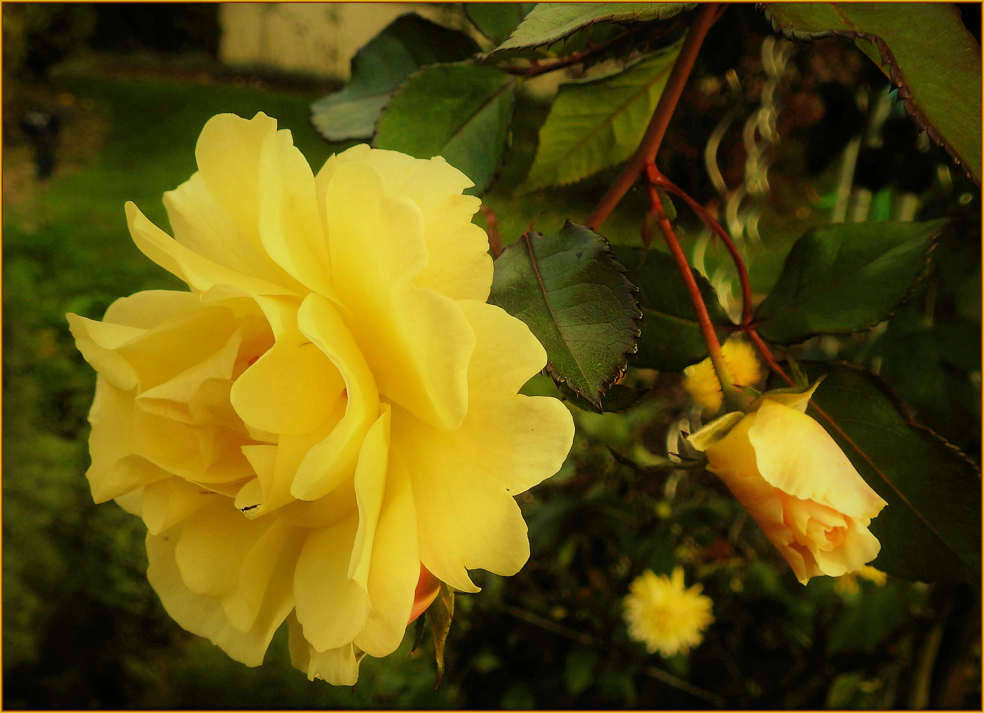 Goldspatz, eine herrlich reich blühende Rose