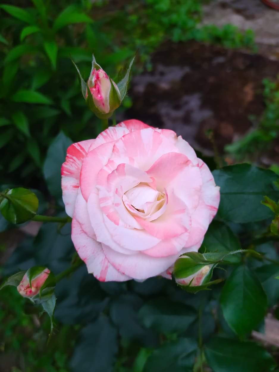 Ce rosier arbustif produit de très jolies roses, même s'il ne monte pas à 1,20 m dans ma roseraie. This shrub rose produces very attractive roses, even though it doesn't reach 1.20 m in my rose garden.