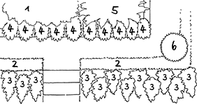 Der formale Gartenlook war viele Jahre als langweilig verpönt, jetzt erlebt er eine kaum für möglich gehaltene Renaissance. Die Gründe liegen auf der Hand: Zum einen ist das In-Form-Bringen geeigneter Gehölze eine äußerst kreative und inspirierende Tätigkeit, zum anderen sind geschickt gestaltete Formalgärten bzw. -winkel auf Dauer an Pflegeleichtigkeit kaum zu übertreffen. Einmal in Form gebracht, zieren sie rund um das Jahr. Und: Keine andere Gartenform bietet auch während der frostigen Jahreszeit so viele optische Impulse. Die Bodendecker-Rose ’Diamant®’ grenzt als flächige Pflanzung direkt an eine dekorative Stützmauer. Ihre peitschenartigen Triebe kann sie dann vorteilhaft in die Tiefe fallen lassen. Mit diesem Trick werden allzu geradlinige Strukturen aufgebrochen und schwungvolle Kontraste gesetzt. Im weiteren Verlauf säumt die himbeerrot blühende ’Gärtnerfreude®’ den Treppenweg bis in die untere Gartenetage. Eine wertvolle Kegel-Eibe (Taxus baccata) und Buchs-Hecken (Buxus sempervirens) sind nur einige der Möglichkeiten, mit für den Schnitt geeigneten Gehölzen zu spielen. Je nach Lust und Laune können auch Pyramiden, Kegel oder Spiralen das Gartenbild dominieren. Einen Blickfang bildet Angela®, eine reich und lange blühende, moderne Strauchrose mit dem Charme alter Rosen. Daneben sorgt ein mannshoher Perlmuttstrauch (Kolkwitzia amabilis) im Mai und Juni für einen angemessenen Blütenanteil im Immergrünen.