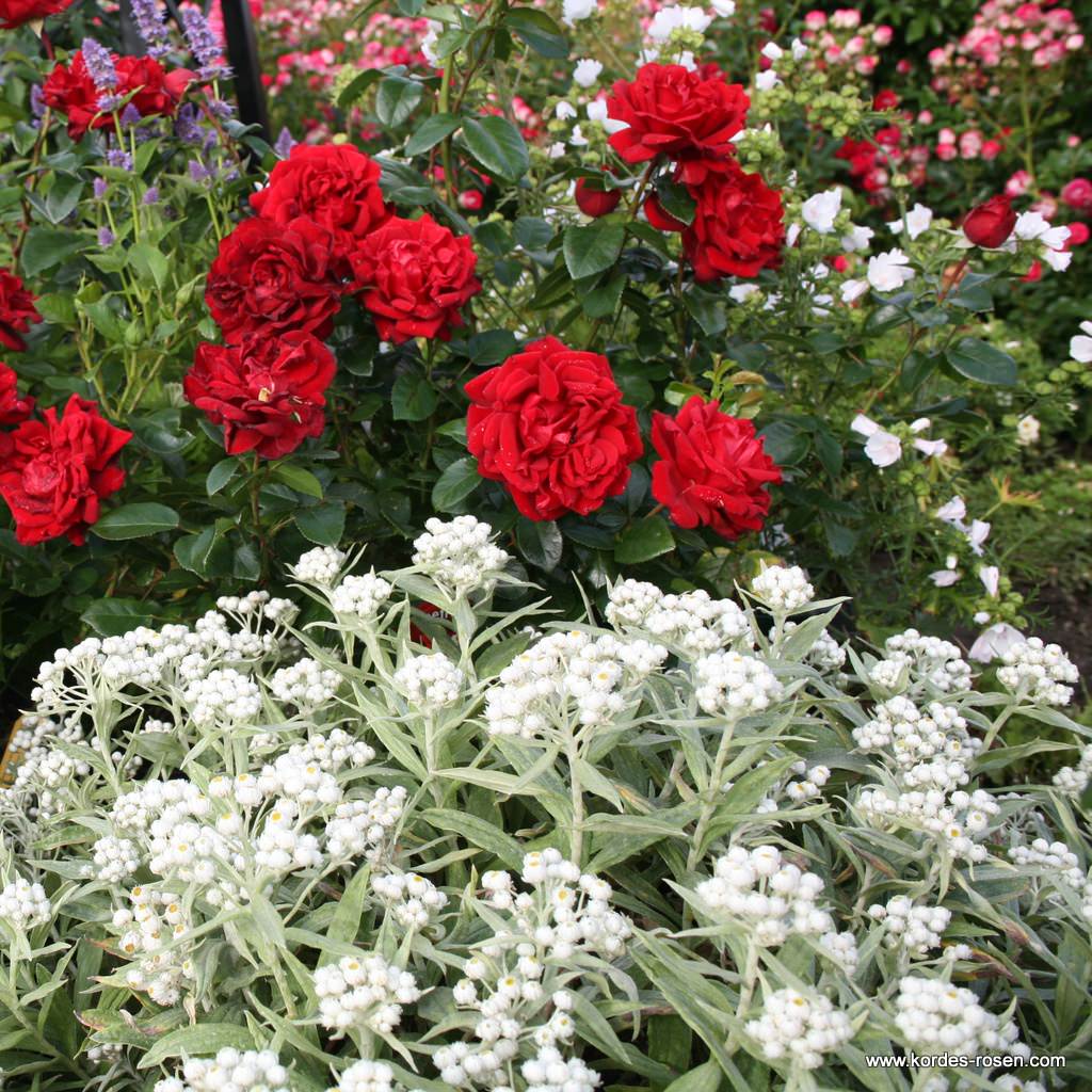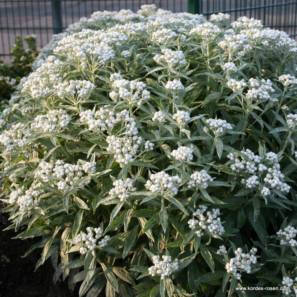 Diese sonnenliebende Blütenstaude zeigt einen Teppich aus Schnee, der mitten im Sommer fällt. Wichtige Staude besonders im Vordergrund, da niedrigblühende Stauden im Sommer rar sind. Das hellgraue Laub sorgt für Abwechslung im Beet und lässt Rosenblüten noch mehr leuchten. Am schönsten gedeiht sie an einem vollsonnigen Standort. Der Boden sollte allerdings nicht austrocknen.