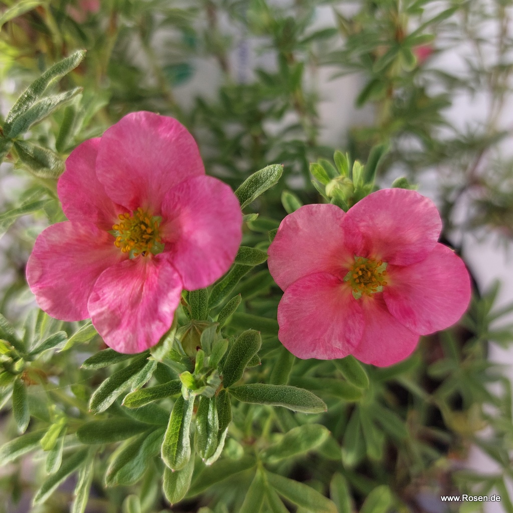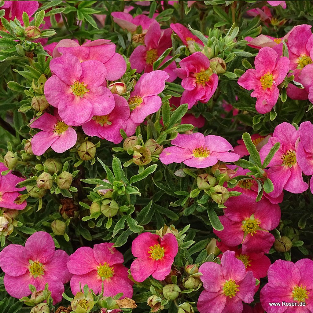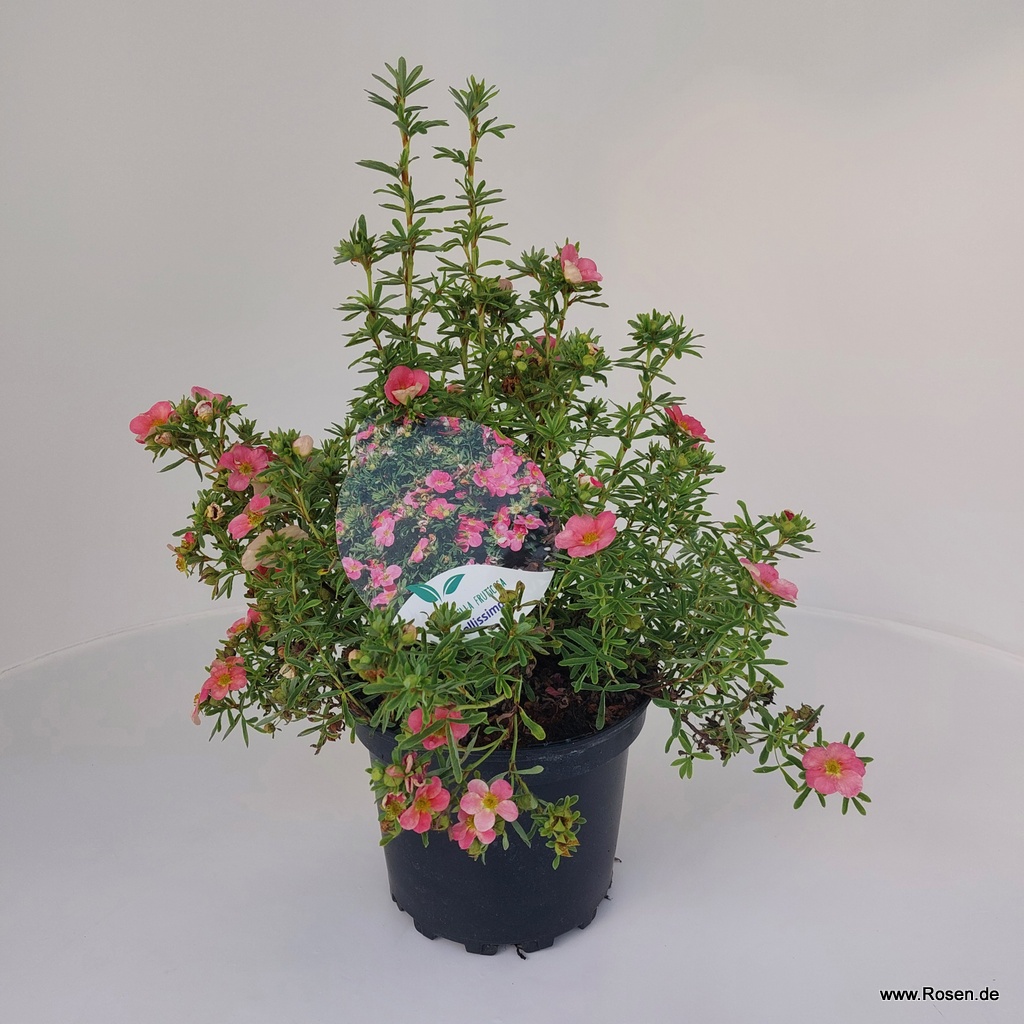 Züchtung als sinnvolle Ergänzung im Sortiment der rosablühenden Fingersträucher. Bellissima ® (S) wächst sehr kompakt und auch die leuchtend rosaroten Blüten sind sehr viel kräftiger als die von anderen Sorten - eine echte Bereicherung im Sortiment!