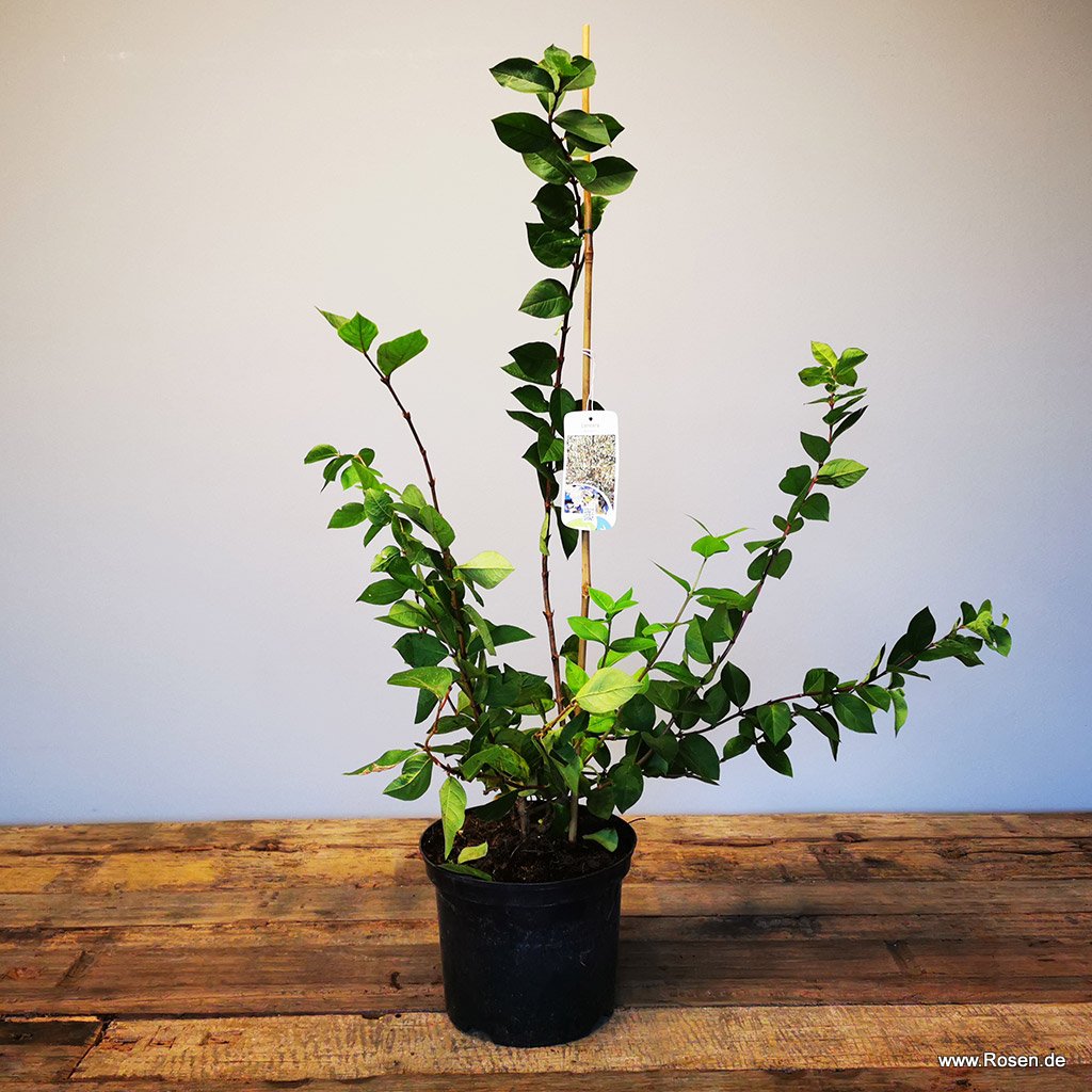 Die Winter-Heckenkirsche in der Nähe sorgt für einen sommerlich-süßen Duft mitten im kalten Winter! Das Besondere an diesem schönen Gewächs ist die ungewöhnliche Zeit der Blüte. Zwischen Dezember und April streben die kleinen Blüten unaufhörlich der Sonne entgegen. Cremeweiße, nach Jasmin oder Honig duftende Blüten verzaubern ihre Umwelt. Diese schöne (bot.) Lonicera purpusii eignet sich ausgezeichnet für kleine und große Gärten. Die Winter-Heckenkirsche bildet einen dicht verzweigten, kompakten Strauch mit relativ dünnen, überhängenden Trieben. Auch das Laub verbleibt, in nicht zu harten Wintern, an dem schönen Strauch. So entsteht im Zusammenspiel von dem mittelgrünen Laub und den cremeweißen Blüten, ein harmonisches Bild. Im Lauf des Frühsommers bilden sich rote, glasig glänzende Beeren, die an kleine Kirschen erinnern – daher auch der deutsche Name Heckenkirsche.