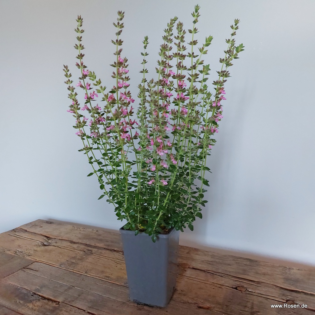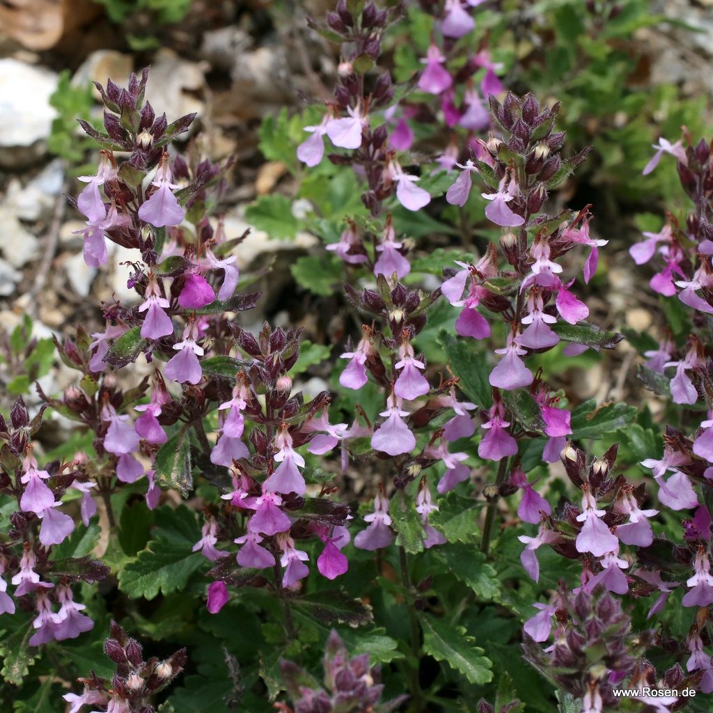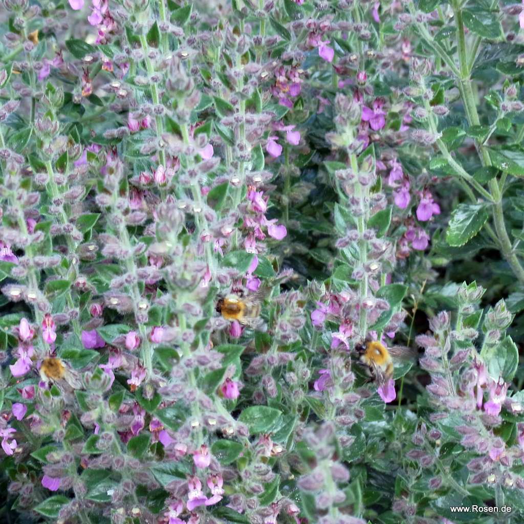 Der immergrüne Bienen-Gamander macht seinem Namen alle Ehre. Wenn die zahlreichen Lippenblüten im Juli erscheinen, feiern die Bienen wahre Nektar-Parties. Es ist unglaublich. Abgesehen davon macht dieser kompakte Halbstrauch auch nach der Blüte stets eine gute Figur. Die aromatisch duftenden Blätter bleiben im Winter grün. Er gilt als extrem frosthart und ist mit seinem mediterranen Aussehen und den purpurfarbenen Blüten ein echter Hingucker. Er bevorzugt einenn sonnigen Standort. Als Beeteinfassung oder niedrige Hecke ist er sehr gut geeignet, weil er sehr schnittverträglich ist. Geliefert werden starke 1,5-Liter Töpfe in dichtbuschiger Baumschulqualität.