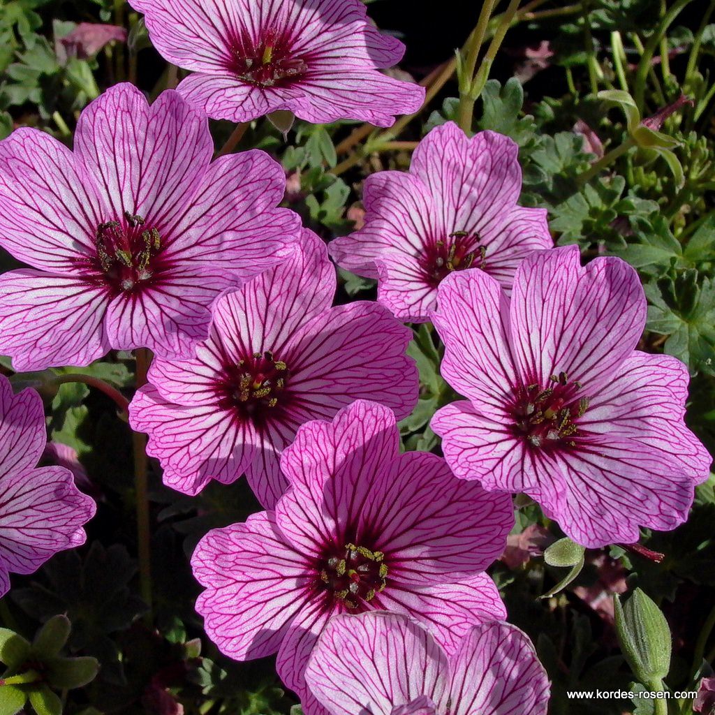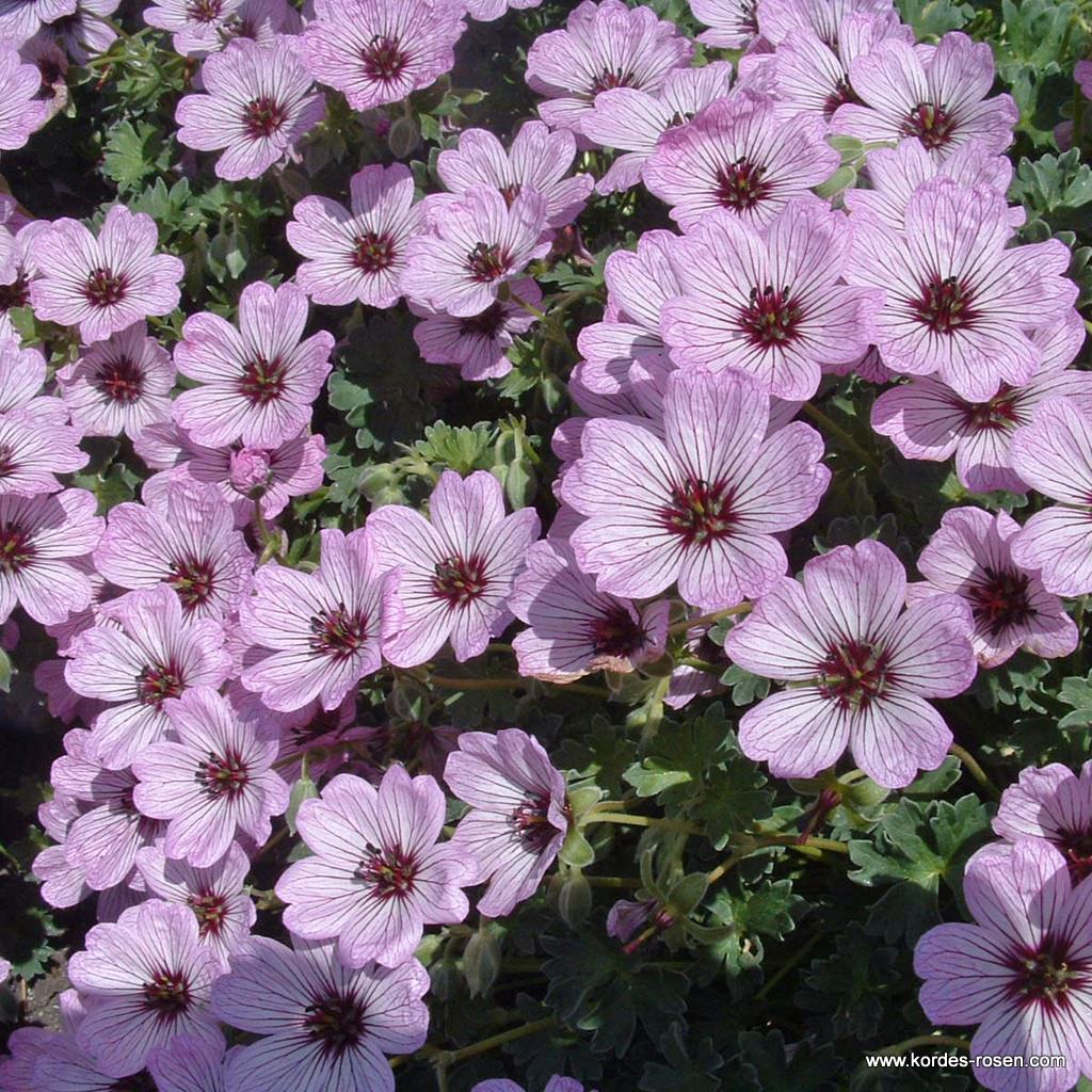 Eine bewärte und sehr hübsche Storchschnabel-Sorte. Diese Ballerina präsentiert ihre lilarosa Blüten mit dekorativen dunkelroten Adern. Ihren Platz findet sie in gemischten Beeten oder Steingärten.