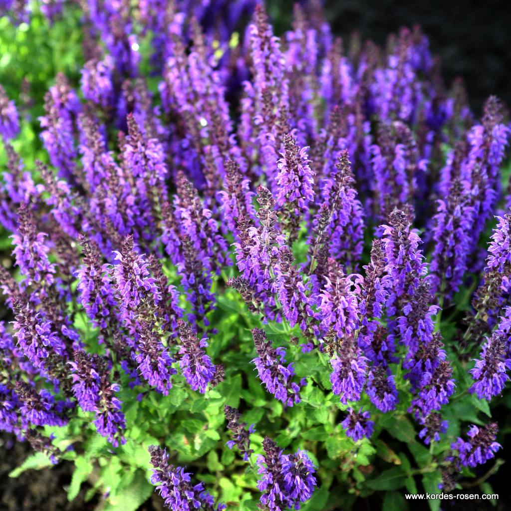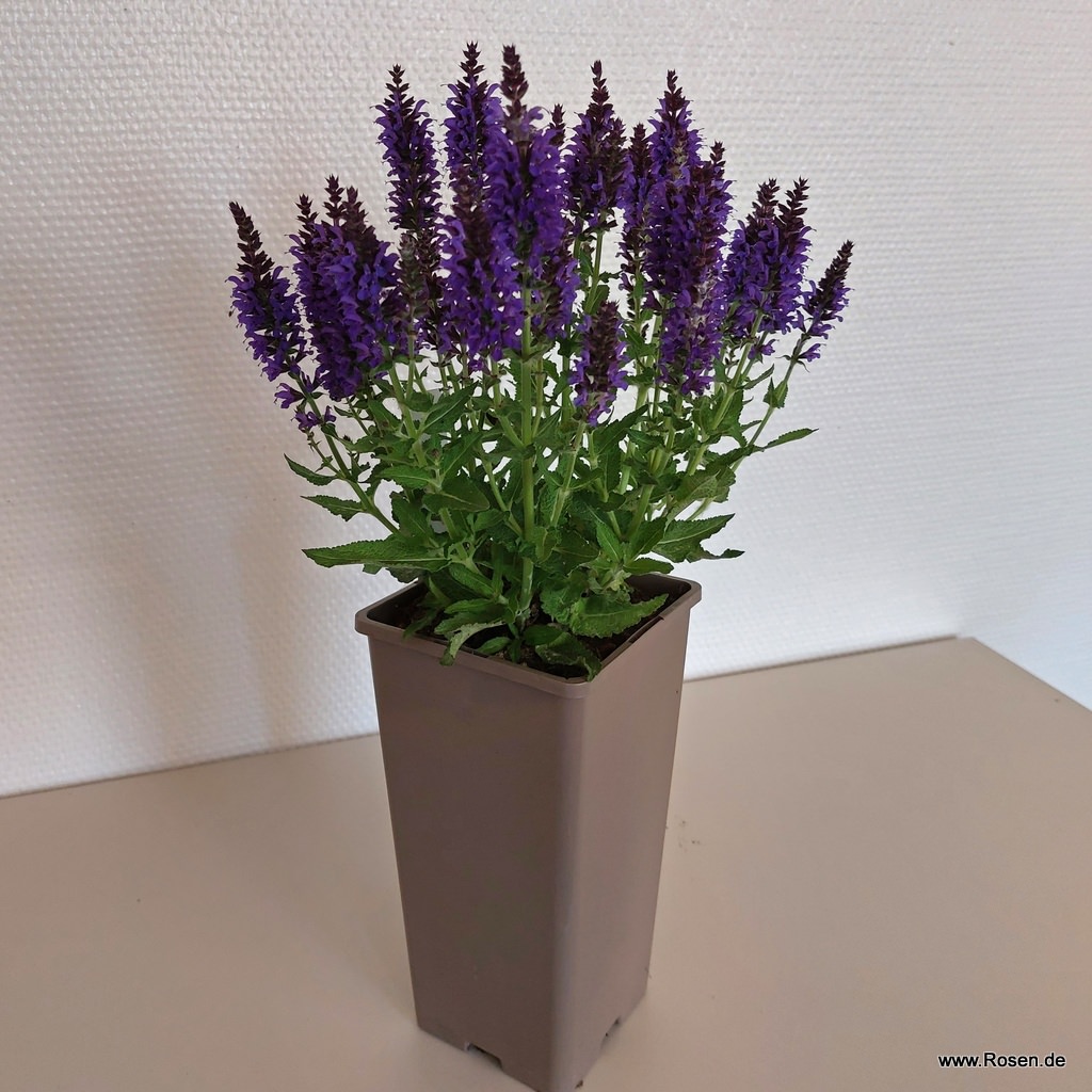 Salvia nemorosa 'Marcus' ist derzeit der begehrteste Salbei im Sortiment. Seine kompakte, niedrige Wuchshöhe macht ihn zur idealen Beeteinfassung. Von Juni bis Oktober taucht dieser Salbei die Beete in ein Blau-Lila. Diese Farbe verträgt sich gut mit Rosen und darum ist der Salbei ein perfekter Rosenpartner. Auch in Balkonkästen oder Kübeln gedeiht er prächtig.