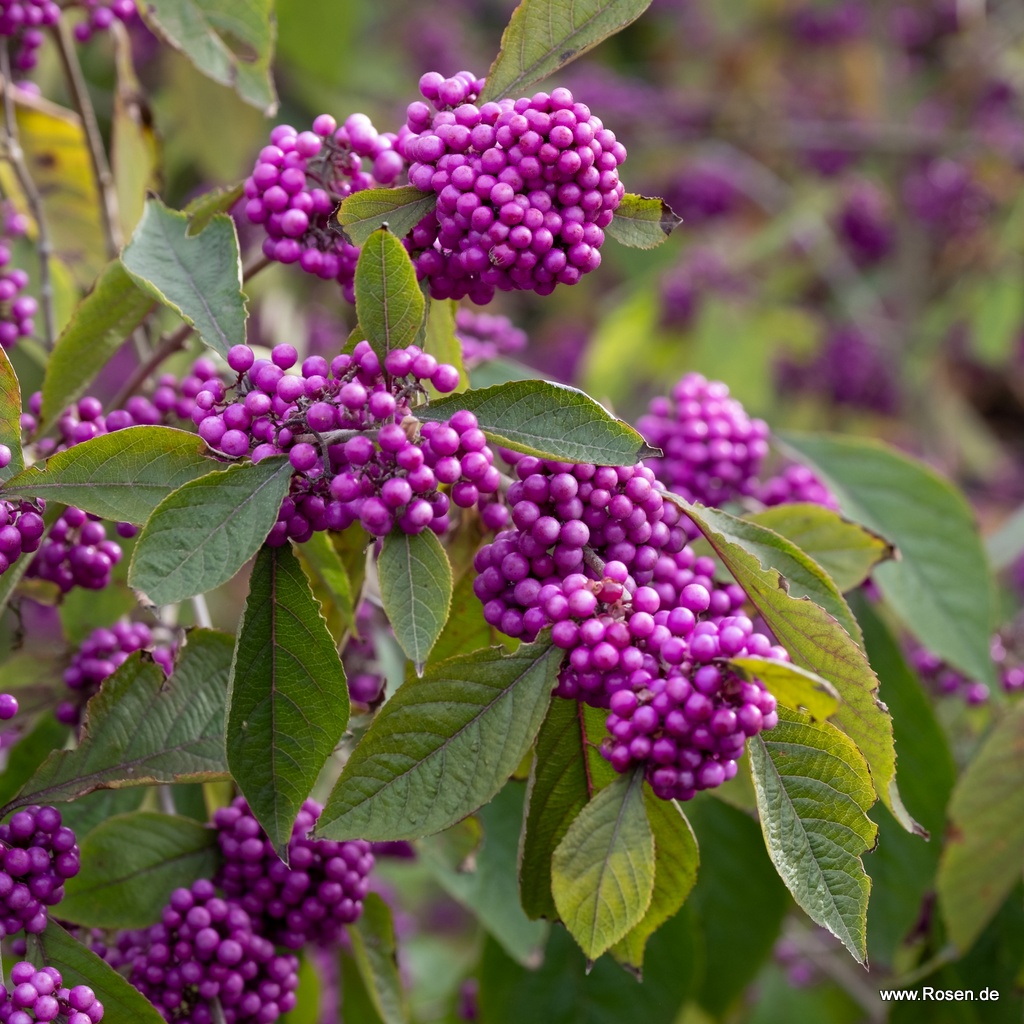 Liebesperlenstrauch oder Schönfrucht wird der Callicarpa auch genannt. Diese überaus reichfruchtende Sorte zeigt ab September dem Herbstgarten, wer die Schönste ist.