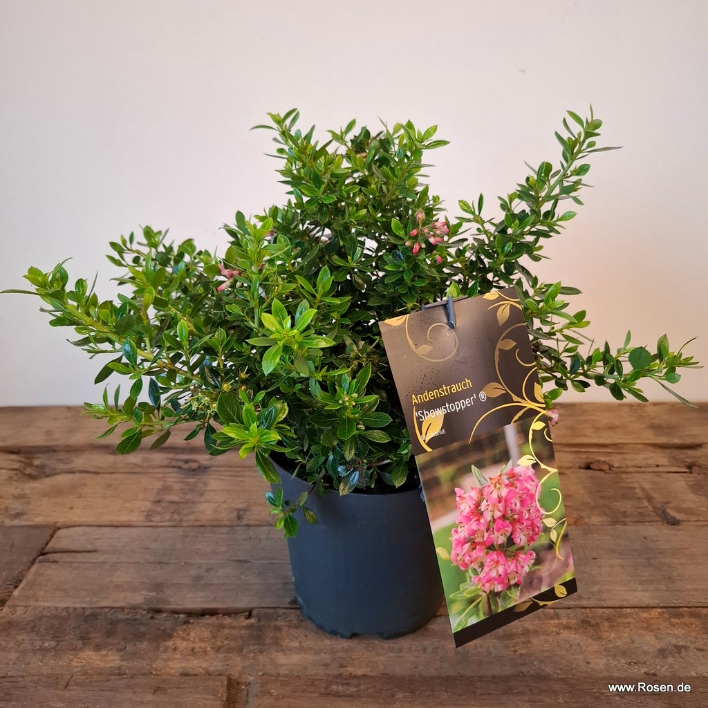 Der Escallonia-Hybrid ‘Showstopper’ ist eine immergrüne Schönheit mit einer sehr guten Winterhärte. Der Andenstrauch zieht mit seinen vielen großen, rosafarbenen Blüten die Blicke auf sich und lockt auch Bienen und Schmetterlinge an. Diese Sorte hält Temperaturen bis zu –12 ºC aus, ohne dass es zu Blattschäden kommt, und ist auch nicht krankheitsanfällig. ‘Showstopper’ entwickelt sich in einem eher breiten Habitus (ca. 120x80 cm), ist gut verzweigt und wächst kompakt. Er kann daher in kleinen Beeten, für niedrige Hecken, in Töpfen und sogar als Bodendecker vielseitig eingesetzt werden.