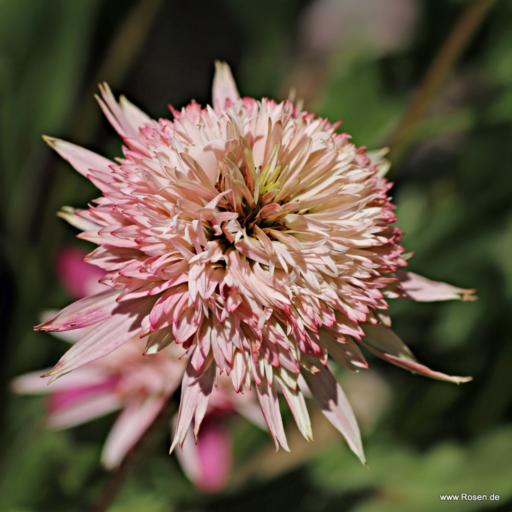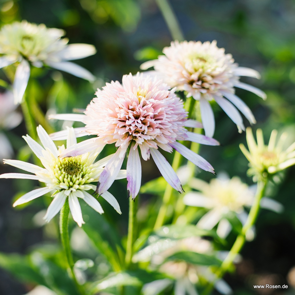 Der Purpursonnenhut 'Cherry Fluff' ist ein neues Highlight im Stauden-Garten. Die brandneue Echinacea Cherry Fluff spielt mit der Blütenfarbe. Die Knospen sind am Anfang noch zartgrün bis cremeweiß und während der Blütezeit verfärben sich die Blütenblätter in Zartrosa. Mit ihrem dichten und kompakten Wuchs ist der Purpursonnenhut auch ideal als Kübelpflanze für Terrasse und Balkon geeignet. Die lange Blütezeit, der üppige Blütenflor, die vielseitigen Verwendungsmöglichkeiten lassen ihn zur absoluten Trendpflanze werden.