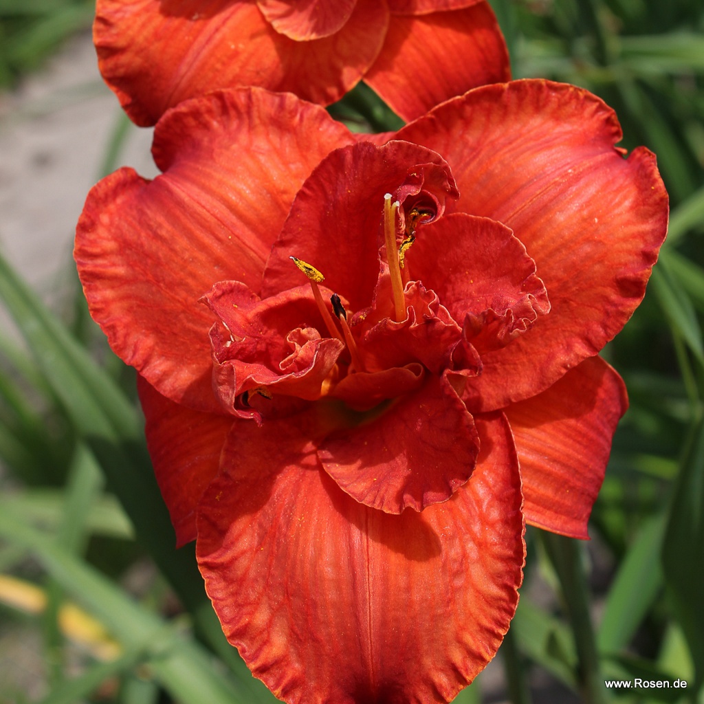 Ein wahres Feuer entfacht die preisgekrönte Taglilie 'Moses' Fire' mit ihren großen, tiefrot leuchtenden Blüten in Ihrem Garten. Besonders wirkungsvoll zeigt sich die ca. 40 bis 50 cm in die Höhe wachsende Staude dabei, wenn sie in Gruppen gepflanzt wird. Hemerocallis x cult. 'Moses' Fire' ist pflegeleicht und langlebig und benötigt dabei nur einen normalen und gut durchlässigen Gartenboden an einem sonnigen bis halbschattigen Standort.