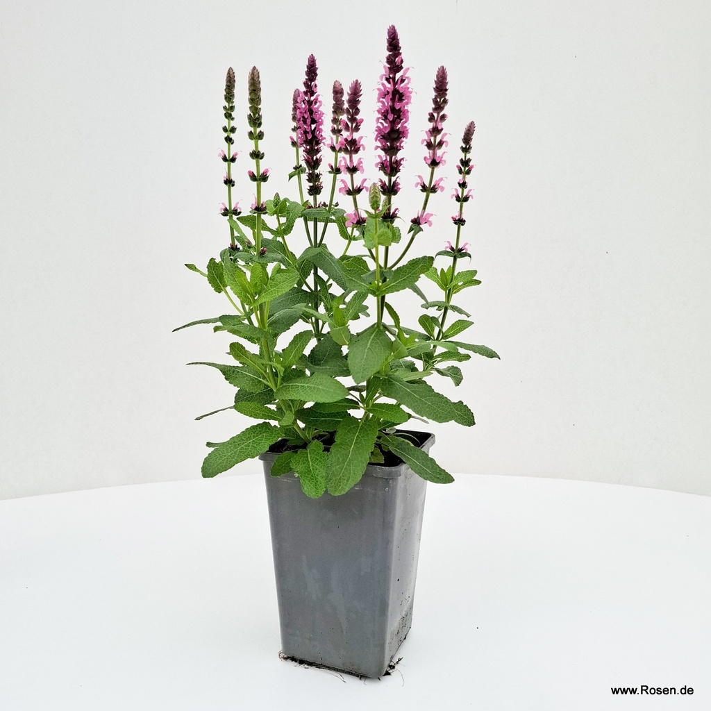 Eine kompakte, reichblühende Staude mit dichtem, niedrigem Wuchs. Die Blüten sind blassrosa, in aufrechten Ähren an dunkleren Stielen angeordnet. Sie bildet charmante, frisch und elegant wirkende Blütenstände. Die Blätter sind duftend, grün und haben einen leicht gezähnten Rand. Ideal für niedrige Rabatten, Staudenbeete und Steingärten Auch für Kübel auf Terrassen und Balkonen geeignet. Nach der Blüte empfiehlt sich ein Rückschnitt, der eine erneute Blütenbildung fördert. Im Frühjahr die gesamten Blütenstände abschneiden. Pflegeleicht, trockenheitsresistent und absolut frostbeständig. Die Pflanze gehört zur modernen Züchtungsserie Sensation®, die als niedrige, kompakte Salbeiform gezüchtet wurde, ideal für kleinere Gärten und städtische Bepflanzungen. Attraktiv für Bienen, Hummeln und Schmetterlinge.