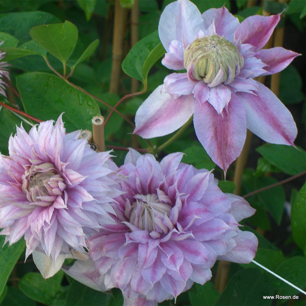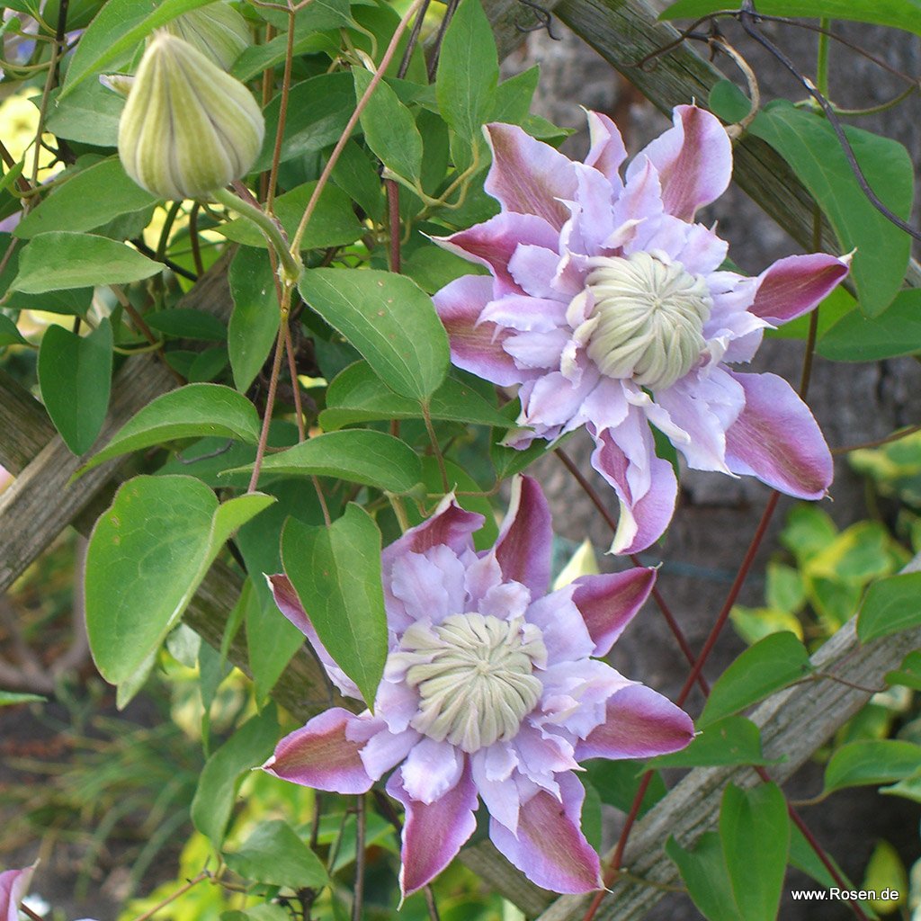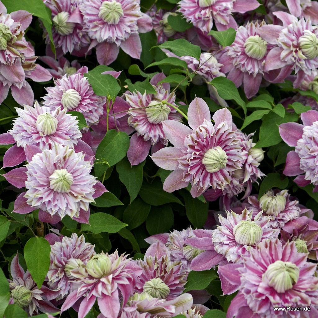 Diese tolle Clematis besticht durch ihre großen, rosa-weißen, im Frühjahr gefüllten Blüten. Für eine üppige Nachblüte im Spätsommer empfiehlt es sich verblühte Blüten regelmäßig zu entfernen. Clematis können auch sehr gut als Kübelpflanze auf der Terrasse oder dem Balkon gepflanzt werden. Tipp: Clematis kommen ursprünglich aus lichten Waldregionen. Achten Sie bei der Standortwahl darauf, dass Ihre Clematis einen kühlen, beschatteten Wurzelbereich zur Verfügung steht. Dies gilt auch bei einer Kübelbepflanzung - Der Kübel sollte gerade vor der intensiven Mittagssonne geschützt/beschattet werden.