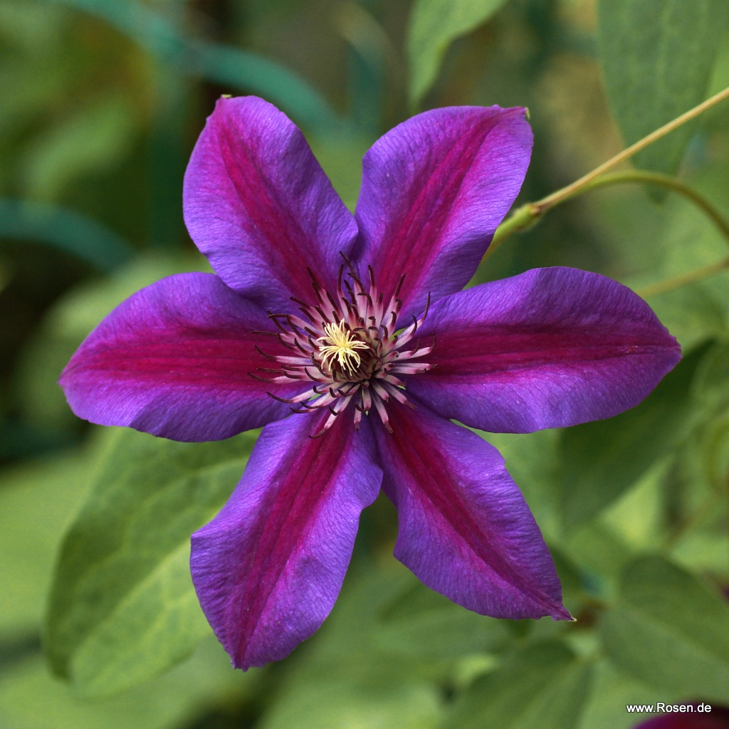 Hingucker ist wohl der richtige Ausdruck. Ein großer lila-blauer Stern mit einer purpurroten Zeichnung leuchten einem im Mai bis Juni entgegen und ein zweites Mal im August.