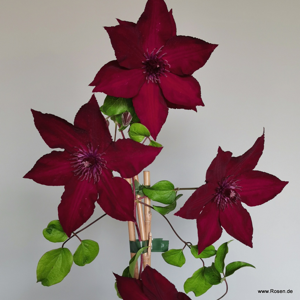 Der optimale Standort für Clematis ist sonnig bis halbschattig und der Boden sollte nährstoffreich und feucht sein. Rückschnitt im Februar/März um die Hälfte.