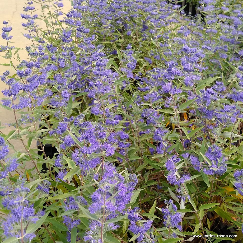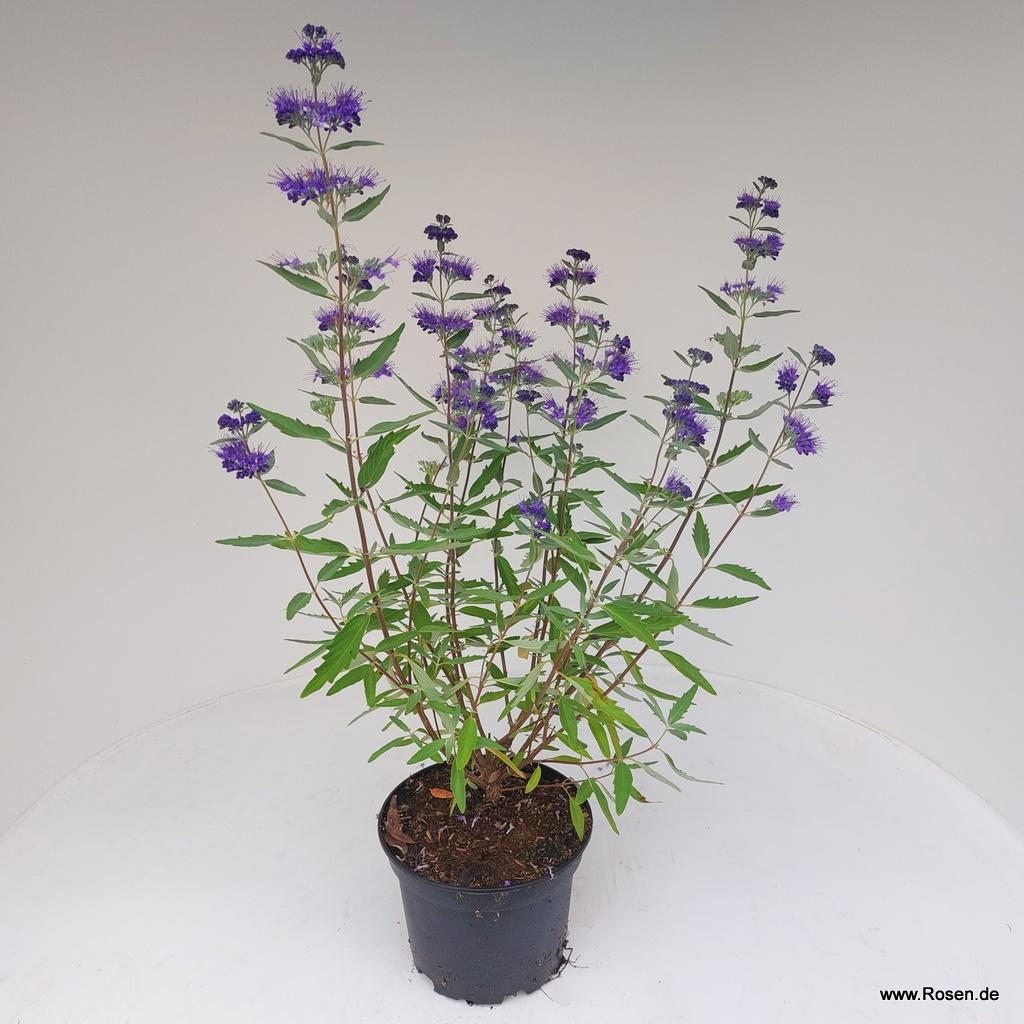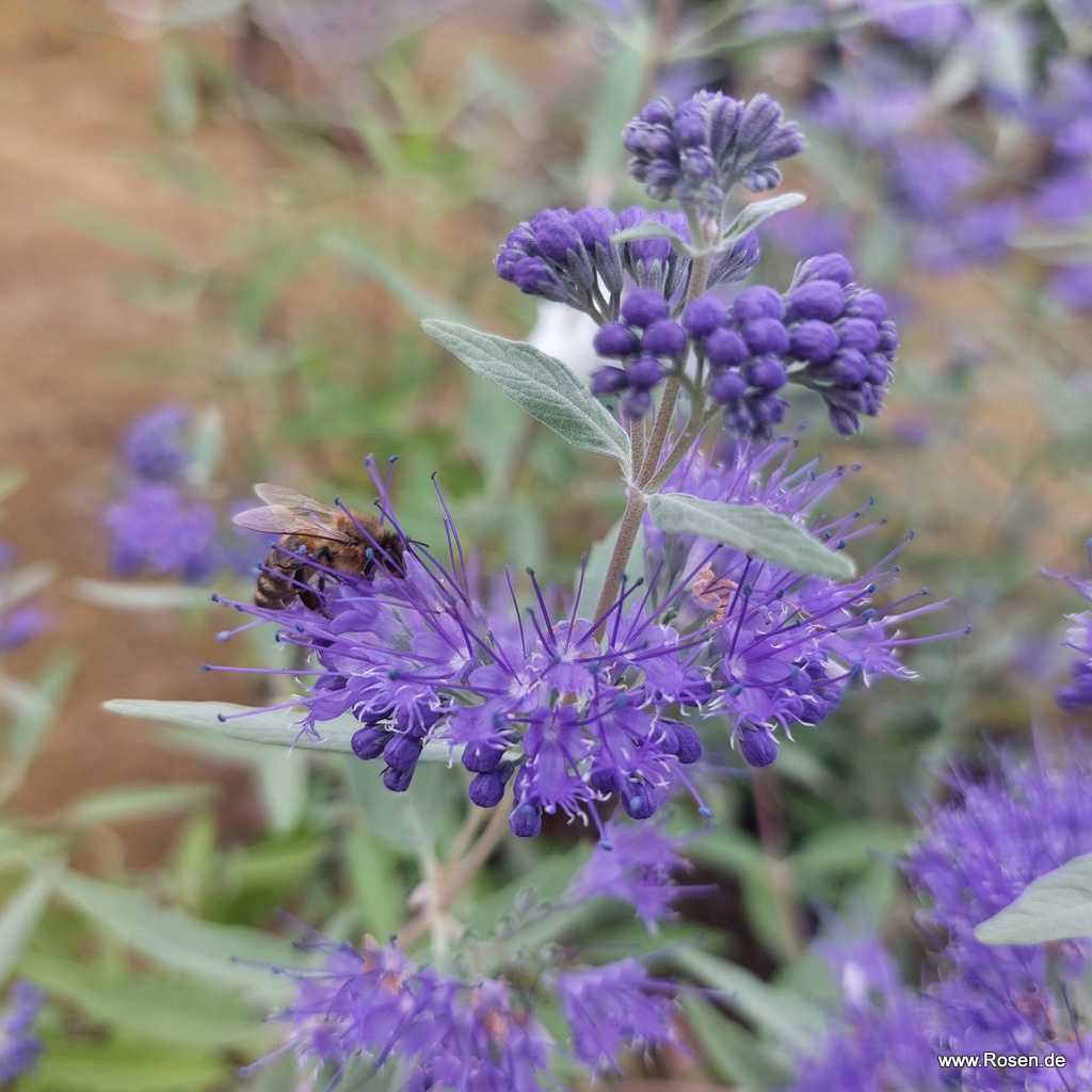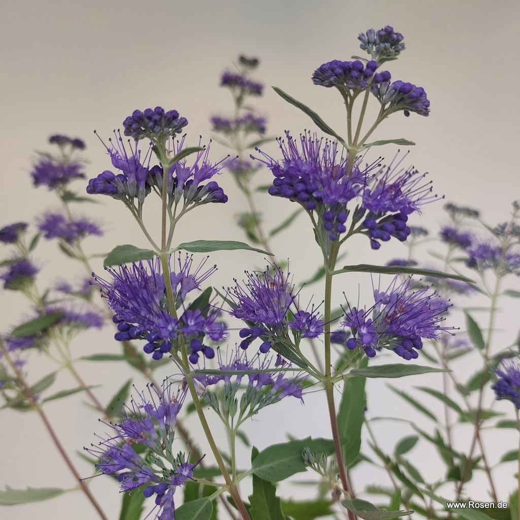 Dieser schöne Rosenpartner zeigt blaue Blütenstände vom Sommer bis in den Herbst und lockt damit viele Insekten, vor allem Schmetterlinge an. Der wertvolle Spätsommerblüher ist sie oft in naturnahen Gärten zu finden. Ein kräftiger Rückschnitt im Frühjahr führt zu neuem Blütenreichtum.