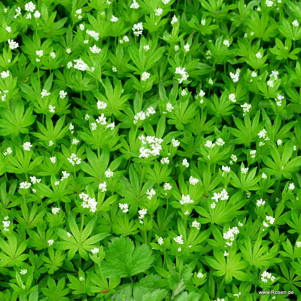 Der Echte Waldmeister ist ein robuster Bodendecker für den lichten Schatten und absonnige Ecken. Der Boden sollte frisch bis feucht sein. Die weißen Blüten erscheinen im April/ Mai. Das Laub verströmt das typische, beliebte Waldmeister-Aroma.