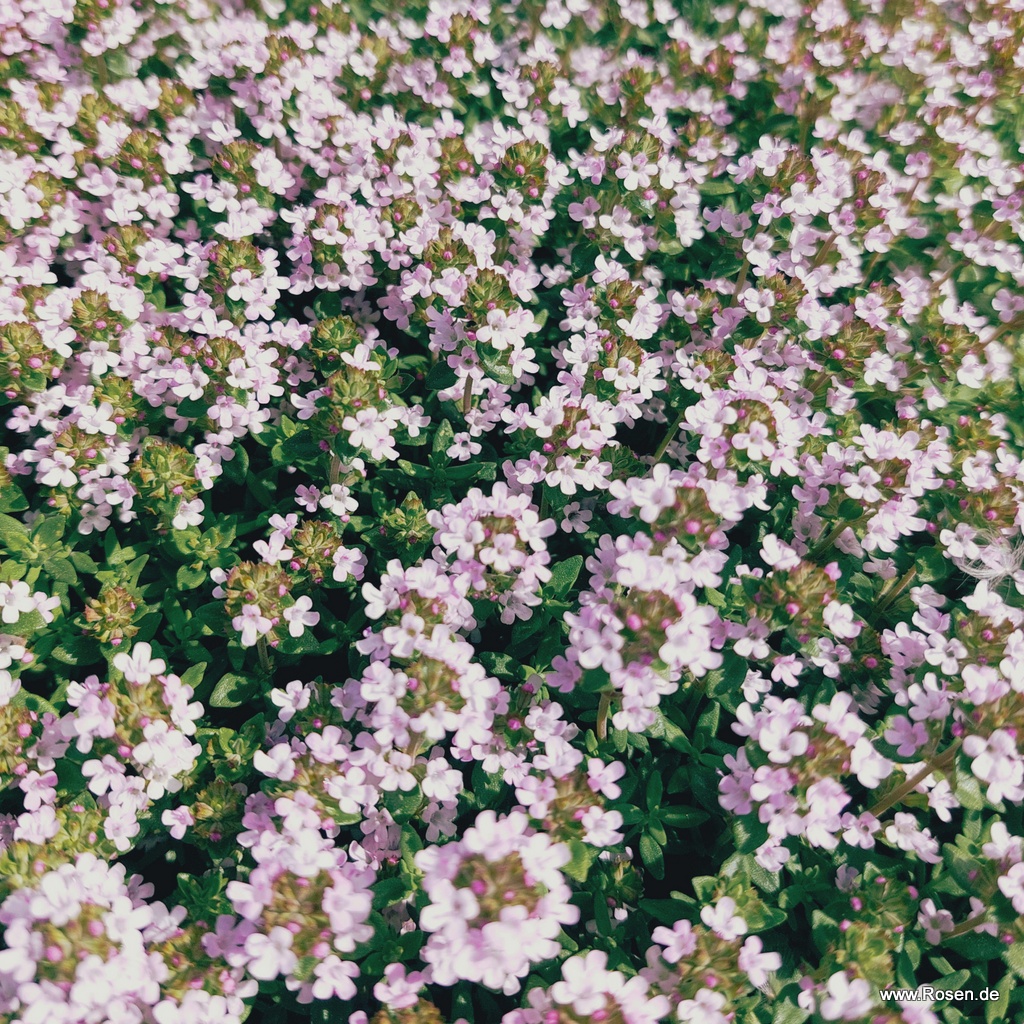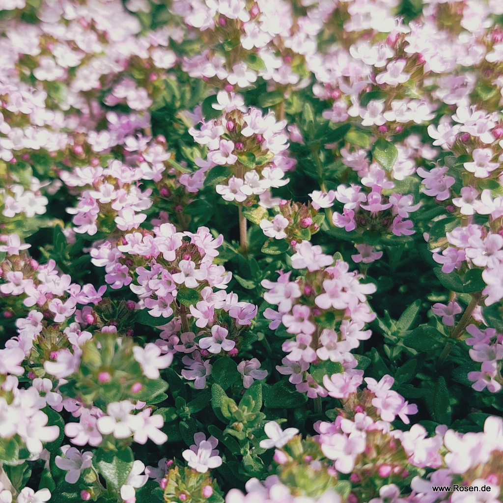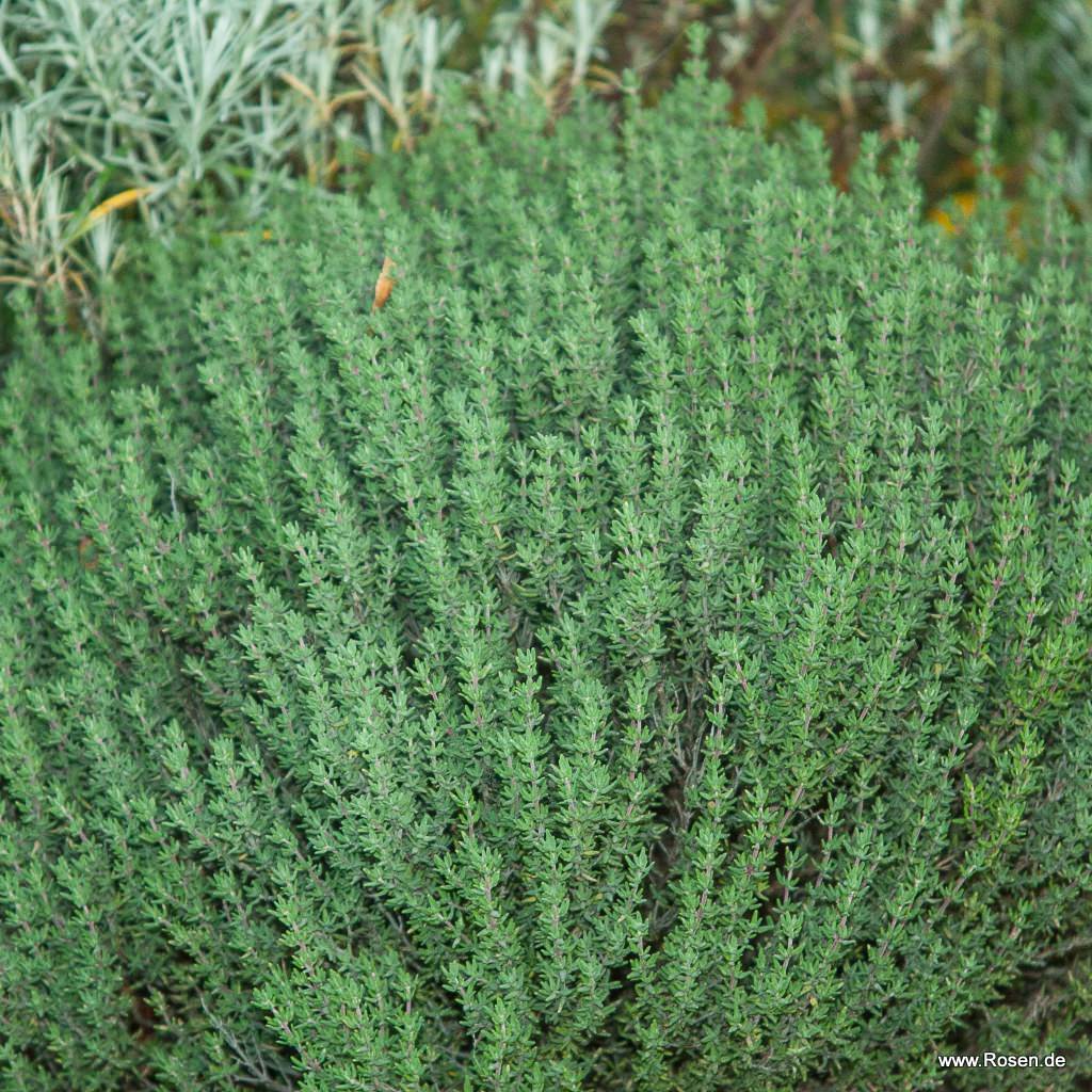 Der Zwerg-Thymian ist ein aufrecht wachsender, dichtbuschig-kissenartiger Kleinstrauch, der mit einer Wuchshöhe von ca. 10 cm vergleichsweise niedrig bleibt. Hat er seinen idealen Standort gefunden, ist der immergrüne Gedrungene Thymian 'Compactus' absolut anspruchslos. Er verströmt einen herrlichen Duft und ist ein wahrer Insektenmagnet. Der winterharte Thymian, der lediglich bei extremem Frost etwas Schutz benötigt, eignet sich hervorragend zur Beeteinfassung und bereichert sogar Kübel und Balkonkästen vom Sommer bis in den Herbst hinein mit seinen violetten Blüten.