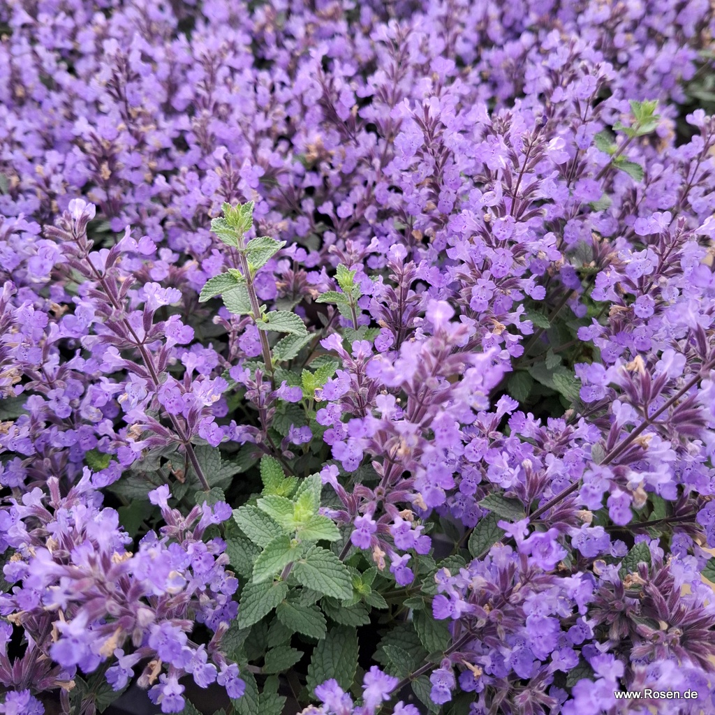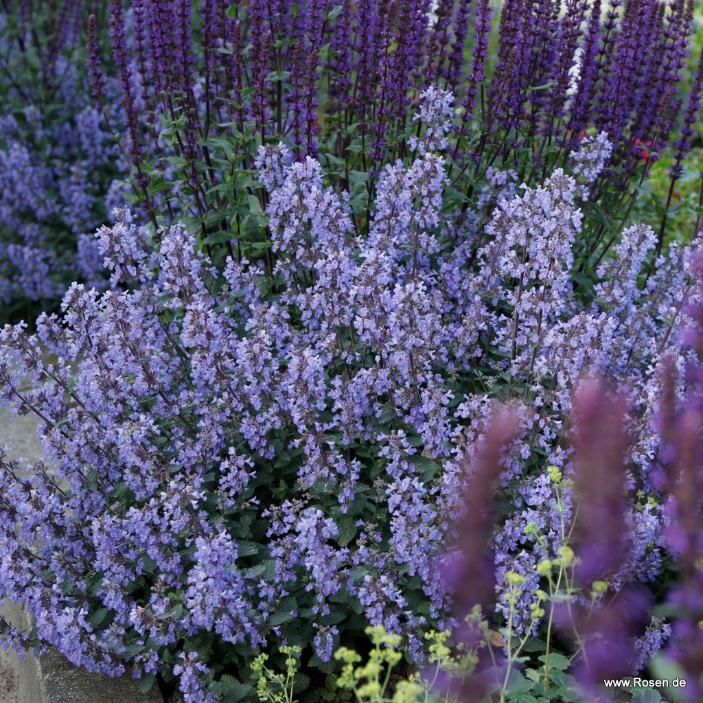 Die derzeit beste, reichblütigste und schönste Rosenbegleitpflanze ist wohl die knuffige 'Purrsian Blue'!!! Das finden auch die zahlreichen Bienen und Schmetterlinge, die sich emsig um die Blüten bemühen. Ein kreisrunder, kugeliger Wuchs und frischgrüne zierliche Blättchen machen Sie zur perfekten Beeteinfassung für sonnige bis halbschattige Lagen. Sie hat einen geringen Wasserbedarf und eine gute Frosthärte. Diese Neuheit wird Sie begeistern!