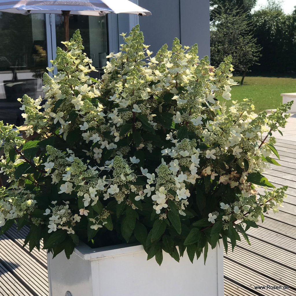 Die wunderschönen Blüten der reich blühenden Rispenhortensien Magical® Vesuvio' erscheinen wahrhaftig "magisch", denn mit einem attraktiven Farbspiel changieren sie im Verlauf von weiß bis tiefrot und verströmen zudem noch einen leichten Duft. Die für Pflanzgefäße, kleinere Gärten und Blütenhecken geeignete Hortensie hat einen kompakten Wuchs und erreicht eine Wuchshöhe von ca. 100 bis 150 cm.