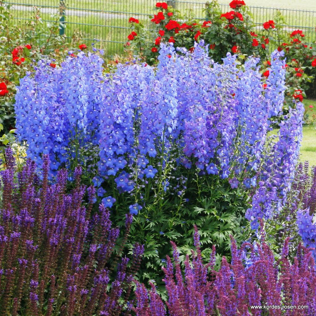 Eine der besten Rittersporn-Sorten, überzeugt durch Standfestigkeit, Blütenreichtum und strahlende Blütenfarbe. Aufgrund seiner Kompaktheit ist er auch für kleinere Gärten geeignet. In Kombination mit Ziersalbei 'Mainacht' oder 'Schneehügel' schafft man eine zauberhafte Kulisse für Rosen egal welcher Farbe. Ein Rückschnitt nach der ersten Blüte sorgt für eine zweite Blüte im Spätsommer.