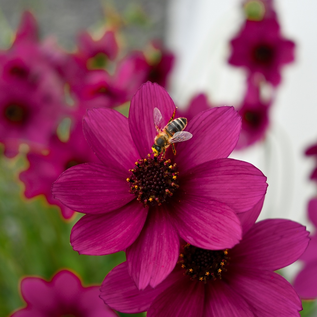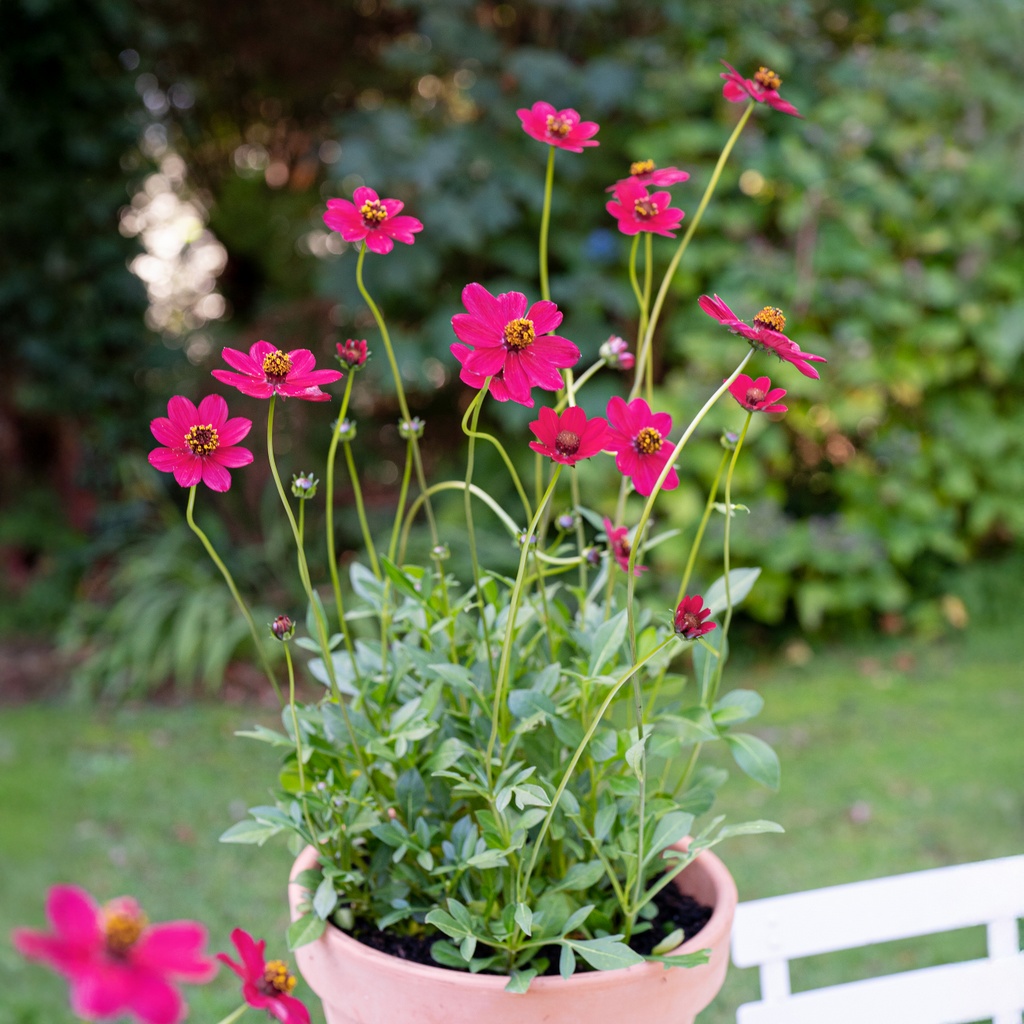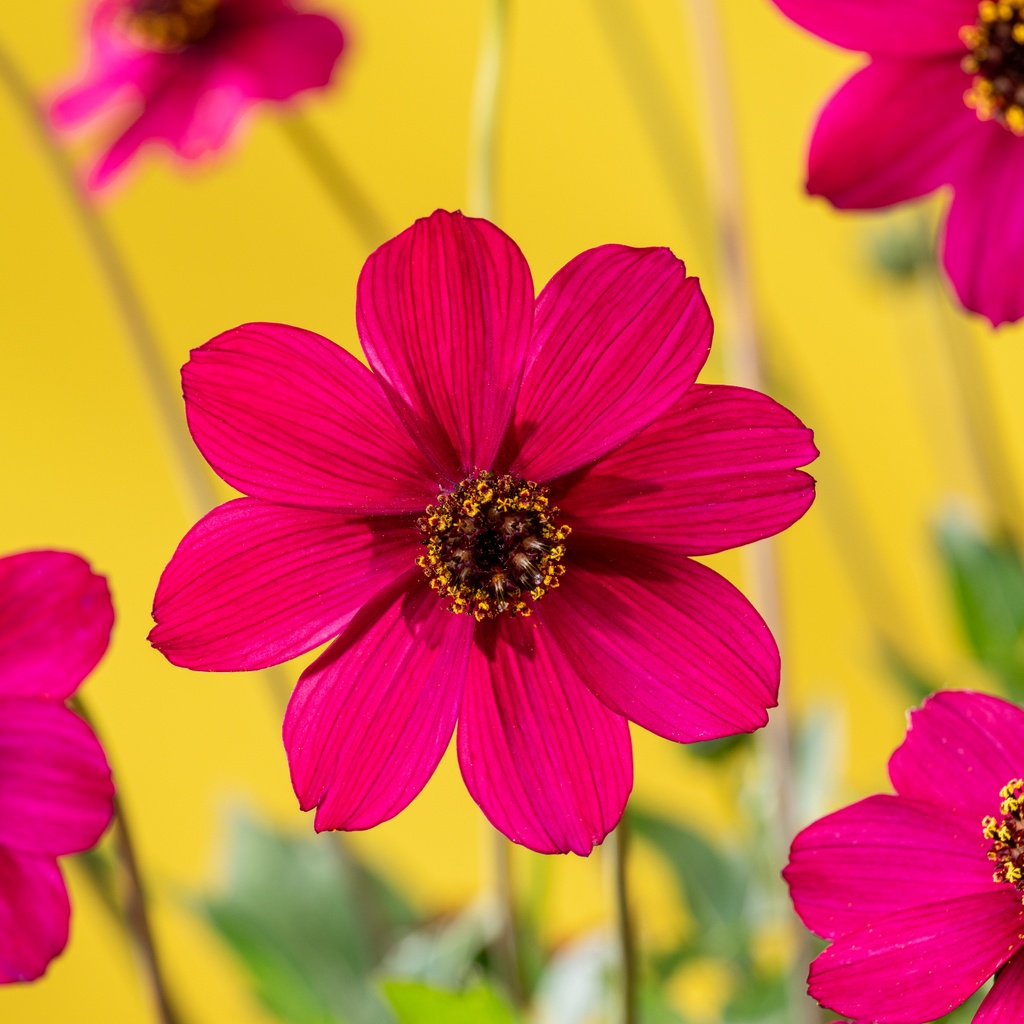Die Schokoladenblume 'Cherry Chocolate' besticht mit deutlich größeren Blüten als andere Schokoladenblumen und mit neuem Farbton: Die kirschroten, nach Schokolade duftenden Blüten werden bis zu 7 cm groß. Cosmos atrosanguineus 'Cherry Chocolate' wächst kompakter als andere Sorten und hat kürzere Blütenstiele, sodass die Blüten dichter über dem Laub sitzen. Die winterharte Staude ist bienenfreundlichen, liebt einen sonnigen bis halbschattigen Standort und wird ca. 45 cm hoch. Der Boden sollte humos und durchlässigen sein. Während der Wachstumsperiode sind regelmäßige Wasser- und Düngergaben ratsam.