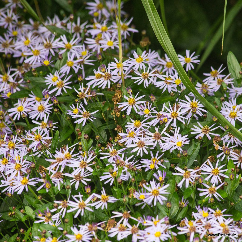 Diese in der Staudensichtung als sehr gut bewertete Zwerg-Aster bildet durch kurze Ausläufer üppige, dunkelgrüne Polster, die im Spätsommer mit unzähligen, meist sterilen, kleinen, hell-lilablauen Sternblütchen übersät sind. Sie ist äußerst vital und kann, in kleinen Gruppen gepflanzt, auch als lockerer Bodendecker verwendet werden. Aster ageratoides 'Adustus Nanus' liebt warme, durchlässige Böden in Sonne und Halbschatten.