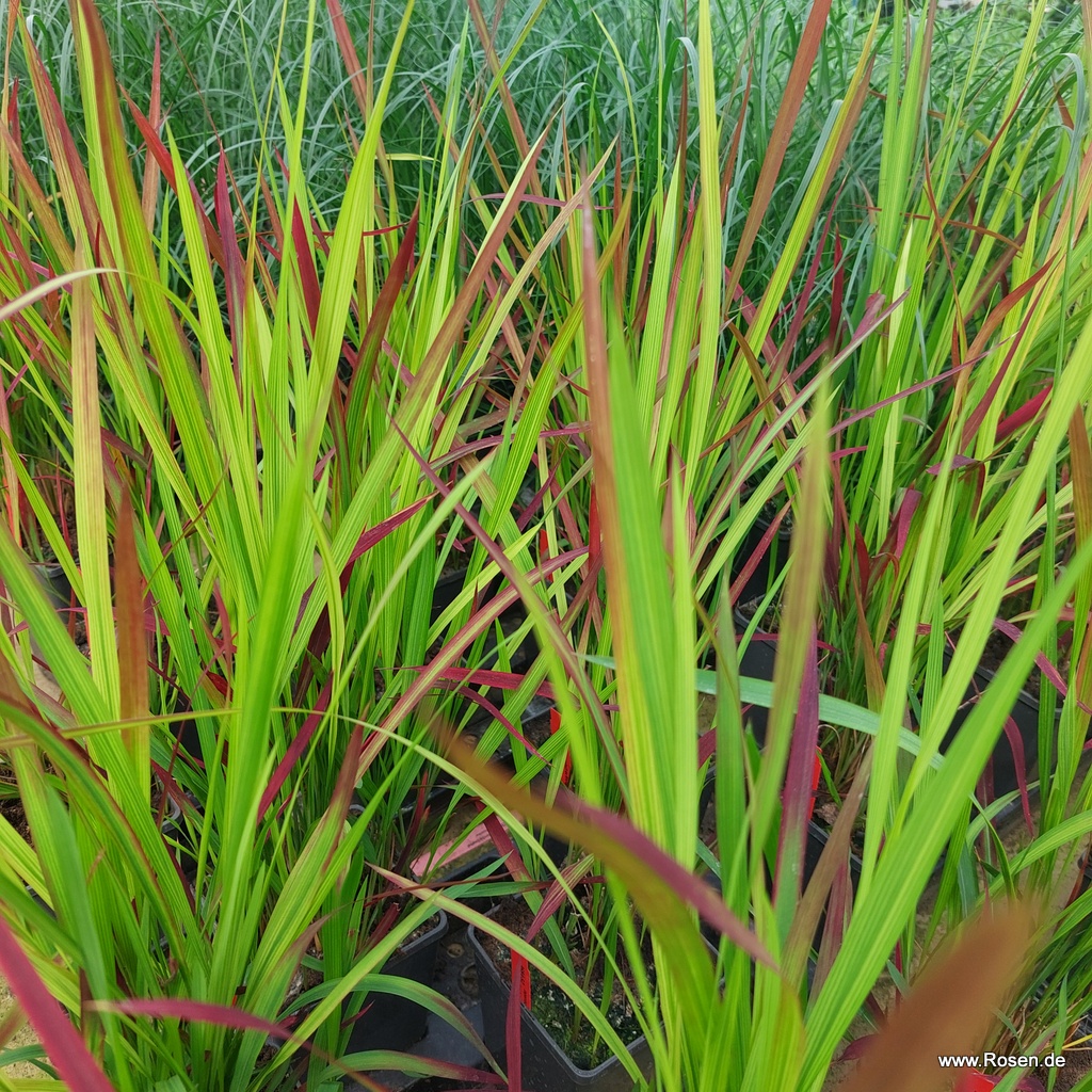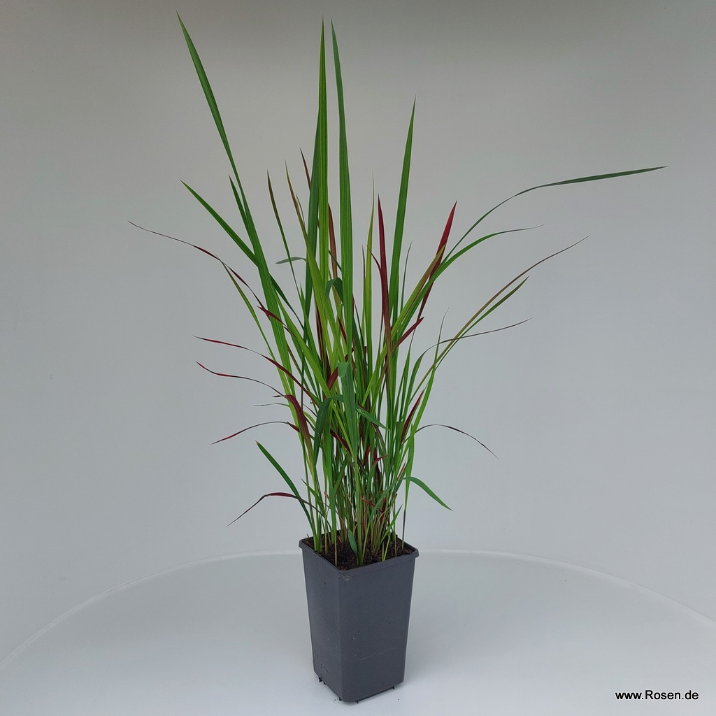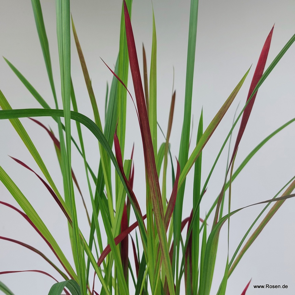 Das Japanische Blutgras 'Red Baron' ist aufgrund der einzigartig rubinroten Färbung seiner aufrechten Laubblätter eines der schönsten Gräser im Garten. Die jungen Triebe zeigen zuerst eine unspektakulär grüne Farbe, die sich im Hochsommer jedoch im oberen Bereich zu einem leuchtenden Rot wandelt. Der farbenfrohe Blickfang, der zu den laubabwerfenden Gräsern zählt, erreicht eine Wuchshöhe von bis zu 40 Zentimetern und bevorzugt einen sonnigen Standort.